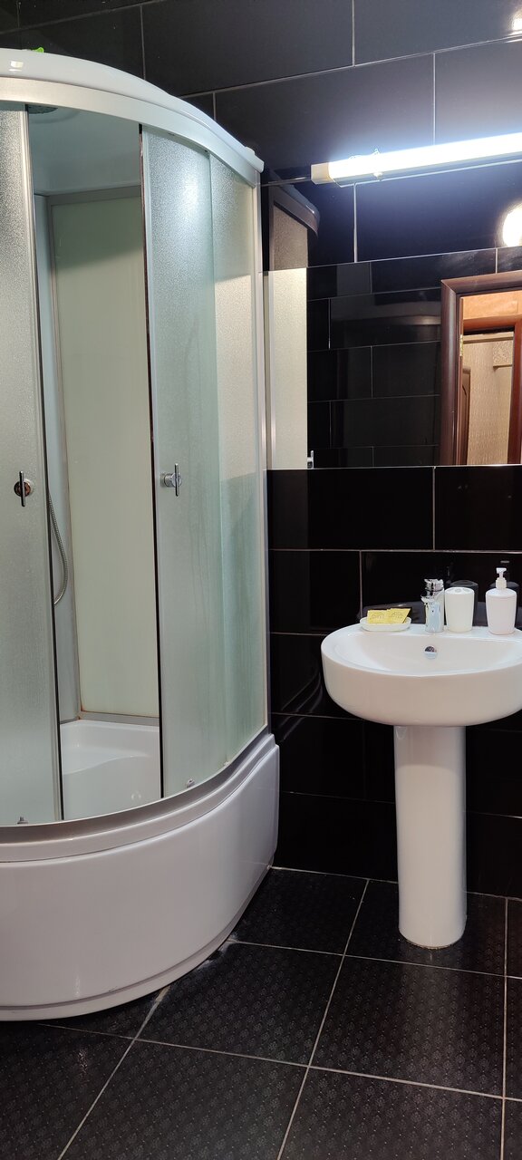 - Душевая кабина неисправна, вода выливается на пол.
