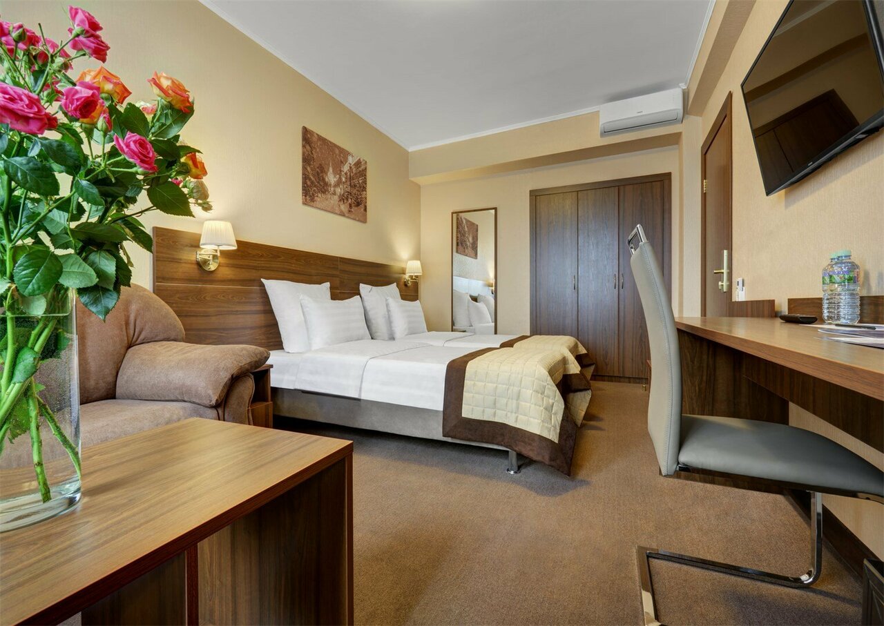 Отличная гостиница, очень комфортные номера, два бара, ресторан, охраняемая парковка, вдекватный и дружелюбный персонал. Особо порадовали женщины на этаже, убирали номер каждый день, быстро и чисто. Всё очень понравилось!!!