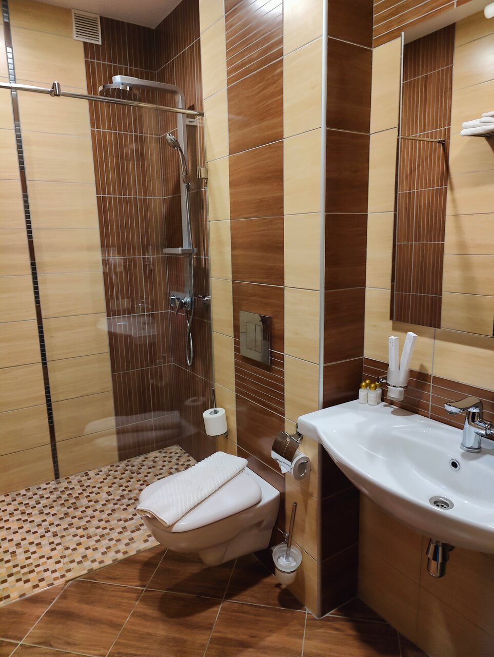 Останавливались в этом отеле на ночь. Номера чистые, уютные, хорошая звукоизоляция. В номере было всё необходимое-полотенца, туалетные принадлежности.
