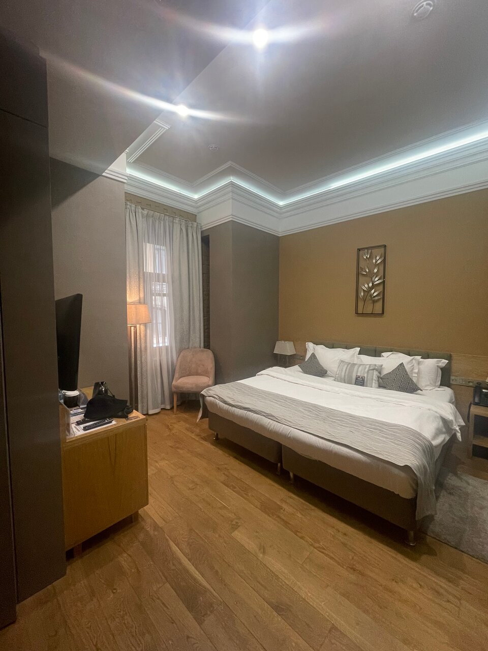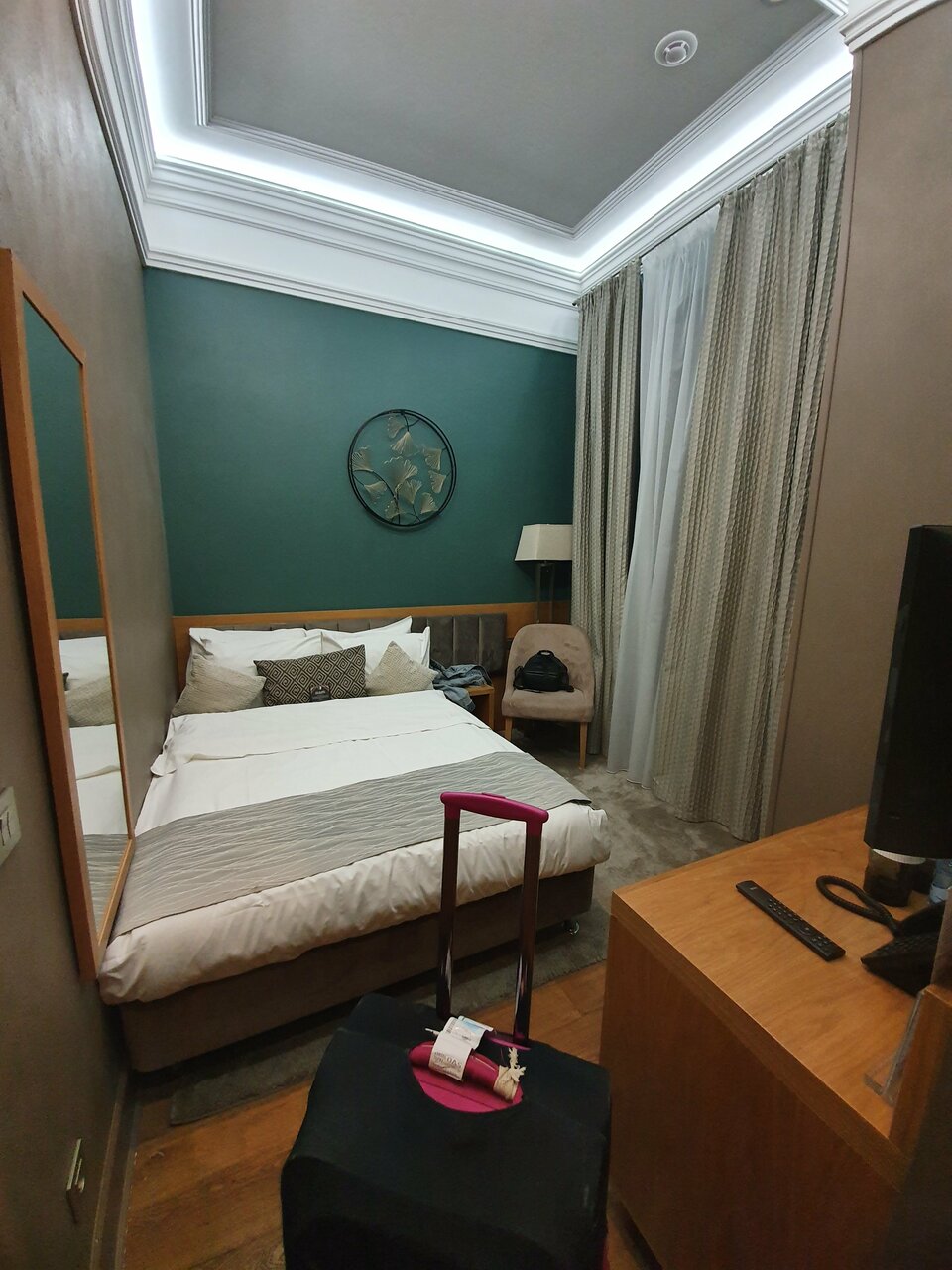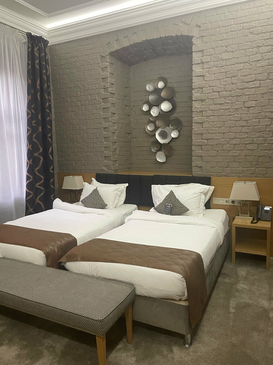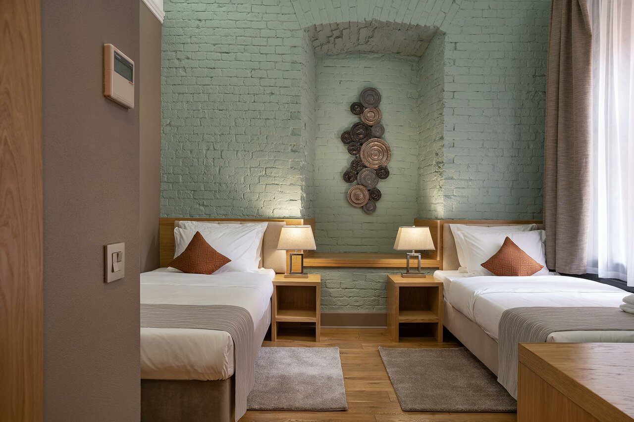 Отель шикарный, тихий,не смотря на то что окна у нас были на город.Месторасположение лучше не придумаешь, одновременно и тихо- спокойно, и пройти 500 метров и вся инфрастуктура рядом.Единственное хотелось бы чуть по больше размеры номера) для 3х людей немного тесновато было.