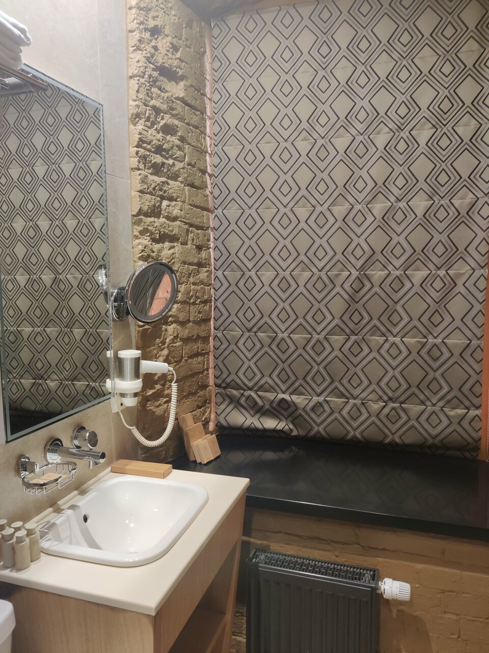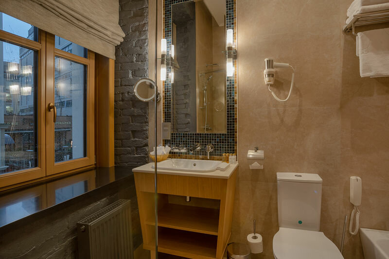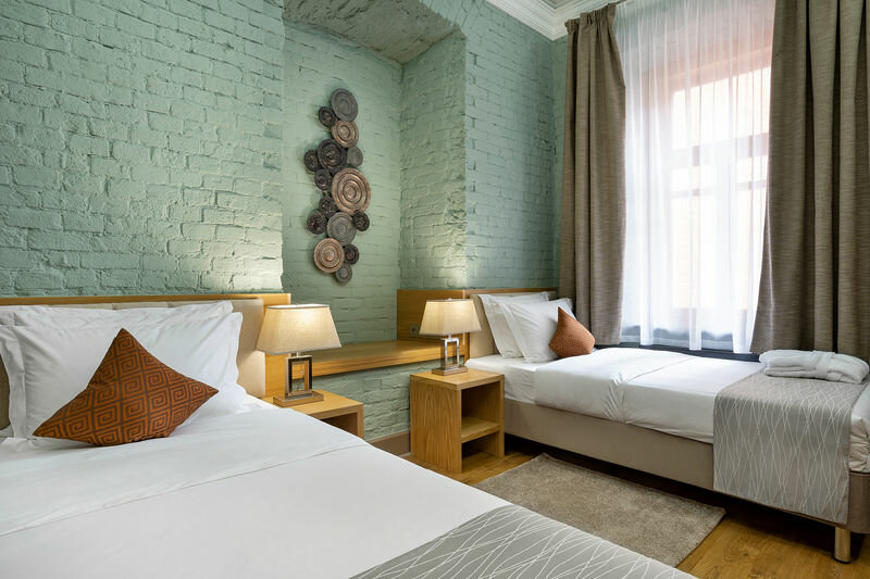 Стильный интерьер в историческом здании-были вдвоём одну ночь. Как было приятно зайти в прохладное помещение после уличной жары. В наличии средства гигиены, халат, тапочки, три вида полотенец. Мы очень довольны. Расположение идеальное -рядом метро Тверская, театр Ленком, ресторанчики на любой вкус, пешком легко дойти до основных достопримечательностей. Отель небольшой, на тихой улочке, ничто нам не мешало отдохнуть. Одно слово-восторг.