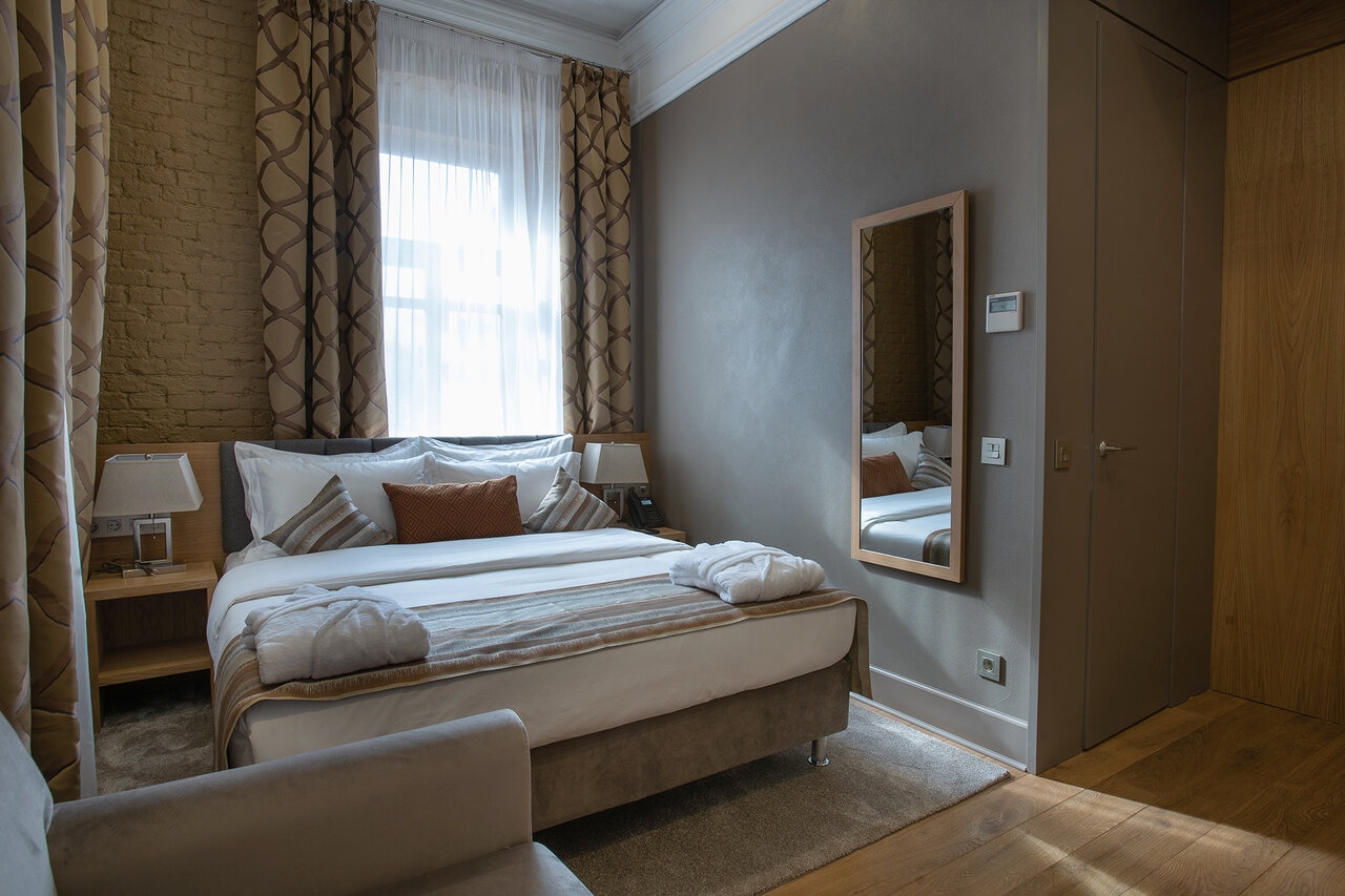 Номера красивые уютные, обслуживание спасибр большое персоналу, расположение очень удобное все в шаговой доступности. Персонал очень отзывчивыйв номерах кристально чисто, нет посторонних запахов. К сожалению нет ресторана (закрыт на реставрацию), но это не испортило впечатлений. Еда в соседнем ресторане очень вкусная и красивая подача. Спасибо Вам большущее