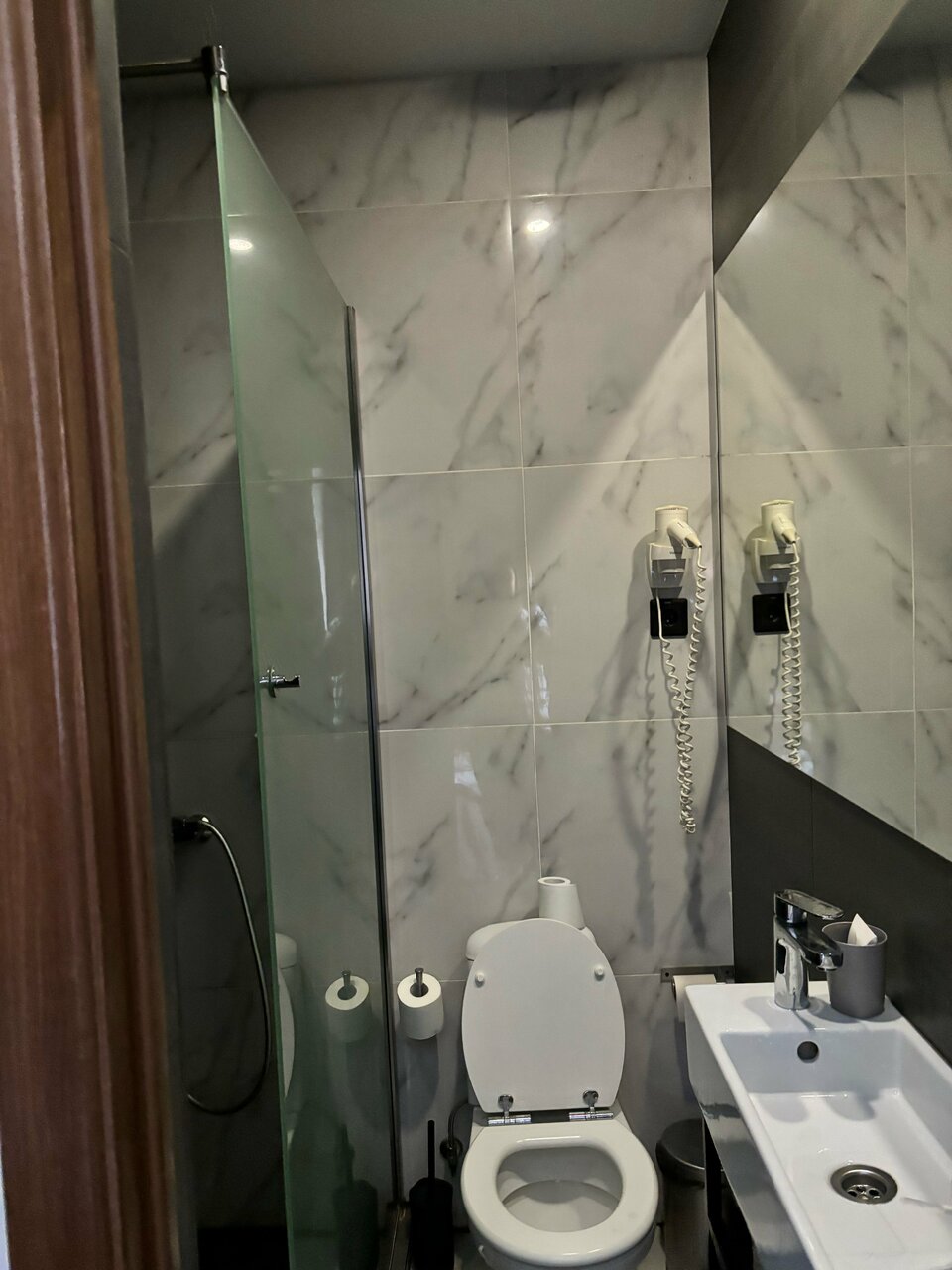 Прочитав отзывы, думала замечательный вариант на два дня, но как же мы разочаровались. Номер был грязный. На всех поверхностях пыль, в ванной плесень и сантехника в налейте. Фен просто ужас какой грязный, вся сетка забита слоем пыли. Напор в душе слабый. Дверь в ванную не закрывается. На постельном волосы. Из холодильника воняло. Когда уходили днем, попросили прибраться, но вечером увидели, что практически ничего не было сделано. Убрали мусор, сложили полотенца и протерли столешницу За 2 ночи отдали 15.400. Цена не оправдана за такой маленький номер. Накрутка только из-за расположения. Ну и минус, что не было завтрака, а продуктовых рядом нет. Не хотелось портить себе настроение руганью, просто больше не будет тут останавливаться(