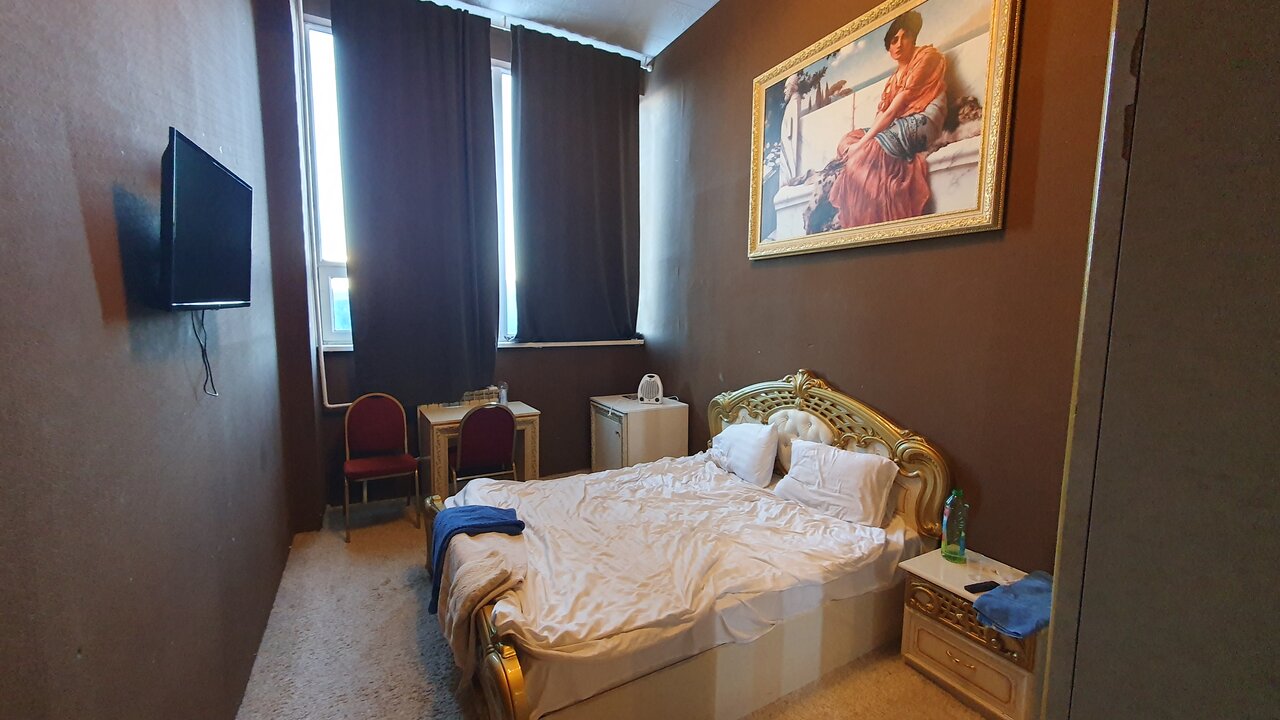Отвратительный запах как внутри общего пространства, так и в номере. Воняет жестко в номере — туалетоом и прочими непонятного рода запахами. Кровать опасная — можно поломать себя. Белье грязное. Очень холодно. Не спасала теплая одежда. Унитаз течет. Кран просто сломался в руках — возможности перекрыть воду в номере просто нет. В общем, крайне не рекомендую.