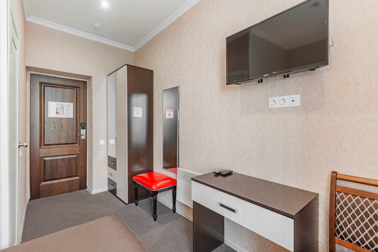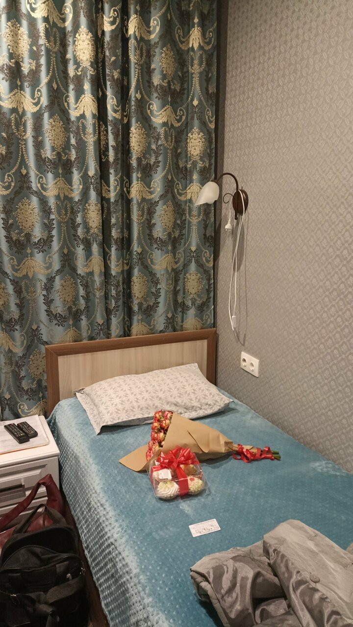 Приемлимая цена. Небольшой номерок. Санузел в номере. Необходимый комплект щётки, тапки, шампунь, мыло — в наличии. Если на сутки-двое, то вполне сойдёт. Общая кухня.