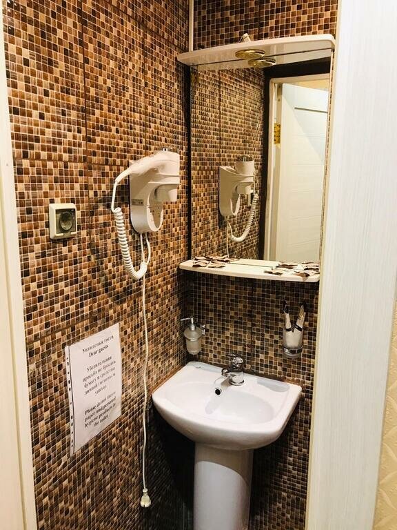 Небольшой отель с удобным местоположением. До метро 10 мин. Рядом есть столовые, кафе, универмаг. Отель уютный, персон внимательный. Есть общая кухня с чаем и вкусняшками. На кухне есть вся посуда и техника для приготовления. Номера небольшие, но переночевать даже семьёй хватает.