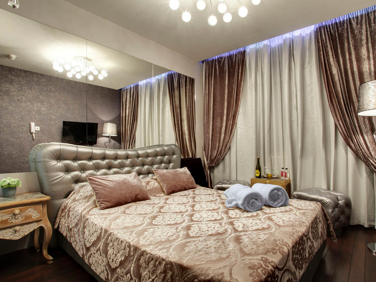 Я имела удовольствие воспользоваться девайсами номера Комната мистера Грея. Это был незабываемый опыт, я в восторге. С самого начала, когда я зашла в номер, меня поразило внимание к деталям и атмосфера. В номере каждый элемент интерьера продуман до мелочей. От удобной кровати до стильного освещения, все направлено на создание ощущения комфорта, расслабления. Персонал очень внимательный и дружелюбный, всегда готов помочь в любом вопросе.