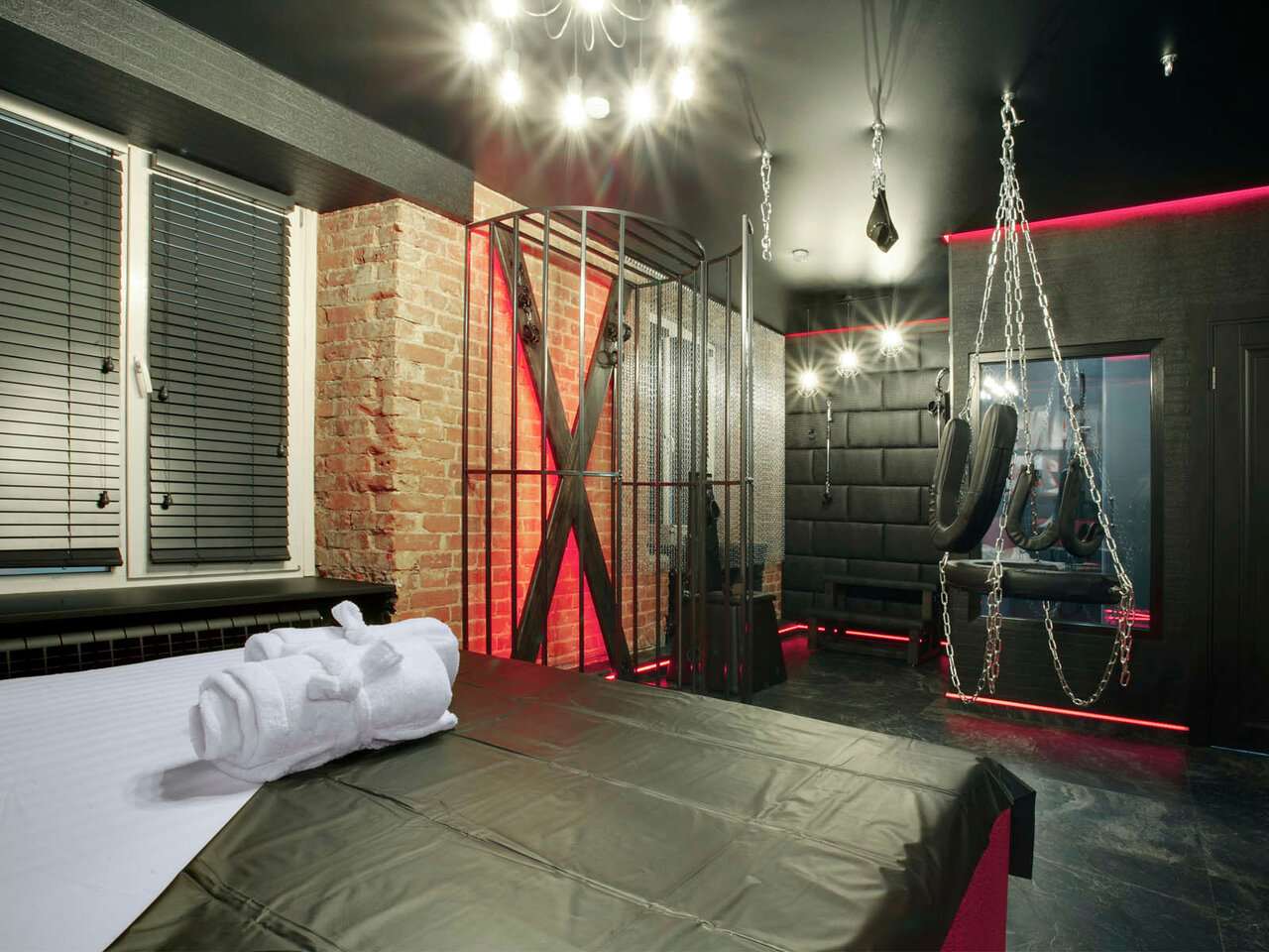 Интересные номера, люксовые номера со своими фишками: зеркала на стенах и потолке, наручники на кровати, джакузи, бдсм номер — смотрите на сайте, чтобы выбрать подходящий. Минус : дороже других почасовых отелей и часто занят.