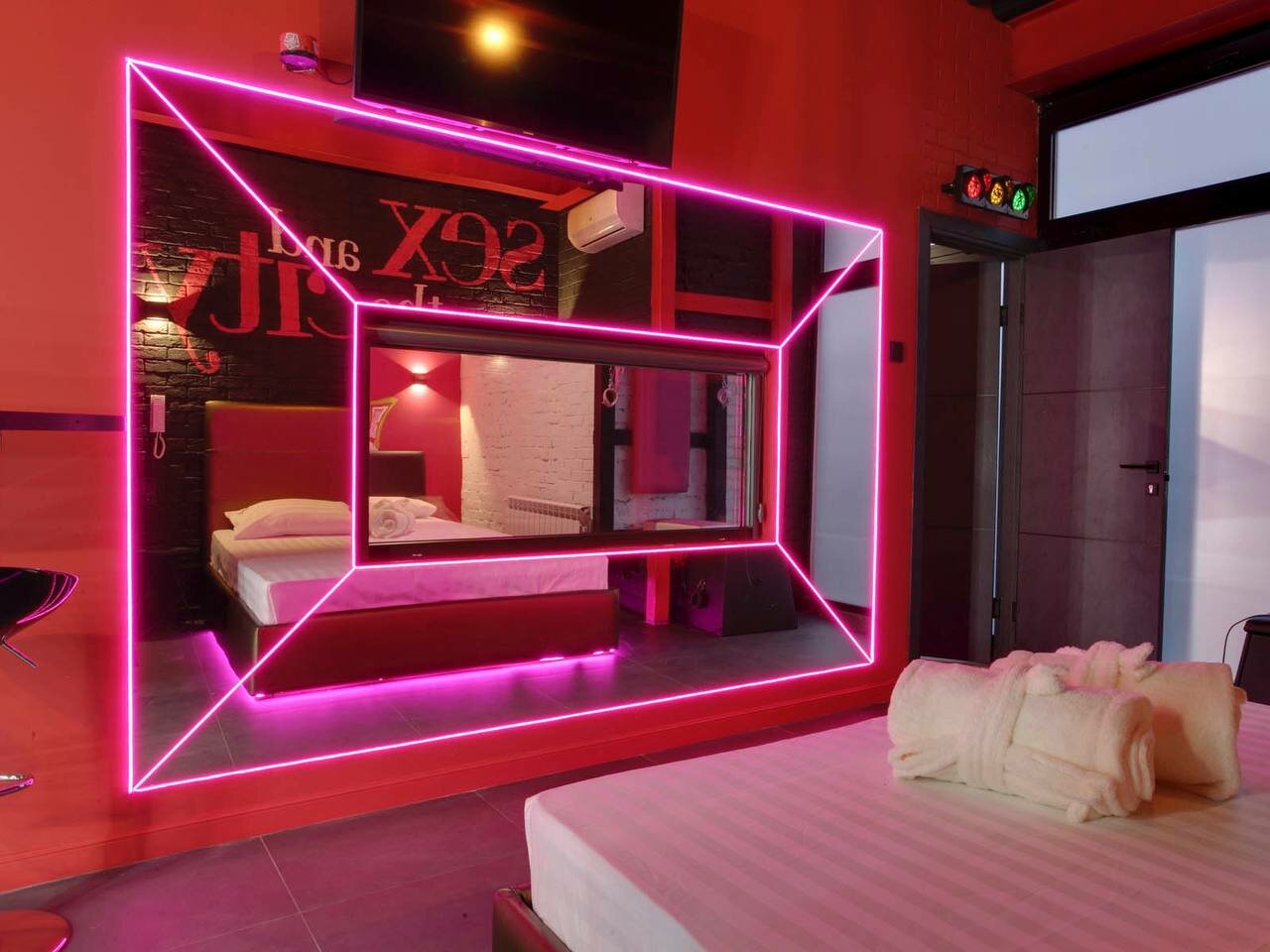 Услуги: — Номера с кондиционером, Wi-Fi, телевизором, чайными принадлежностями. — Варианты размещения: стандартные, с джакузи, совмещённые (только для взрослых). — Дополнительно: халаты, тапочки, фен, ежедневная уборка. — Возможно бронирование отеля на час или длительный срок.