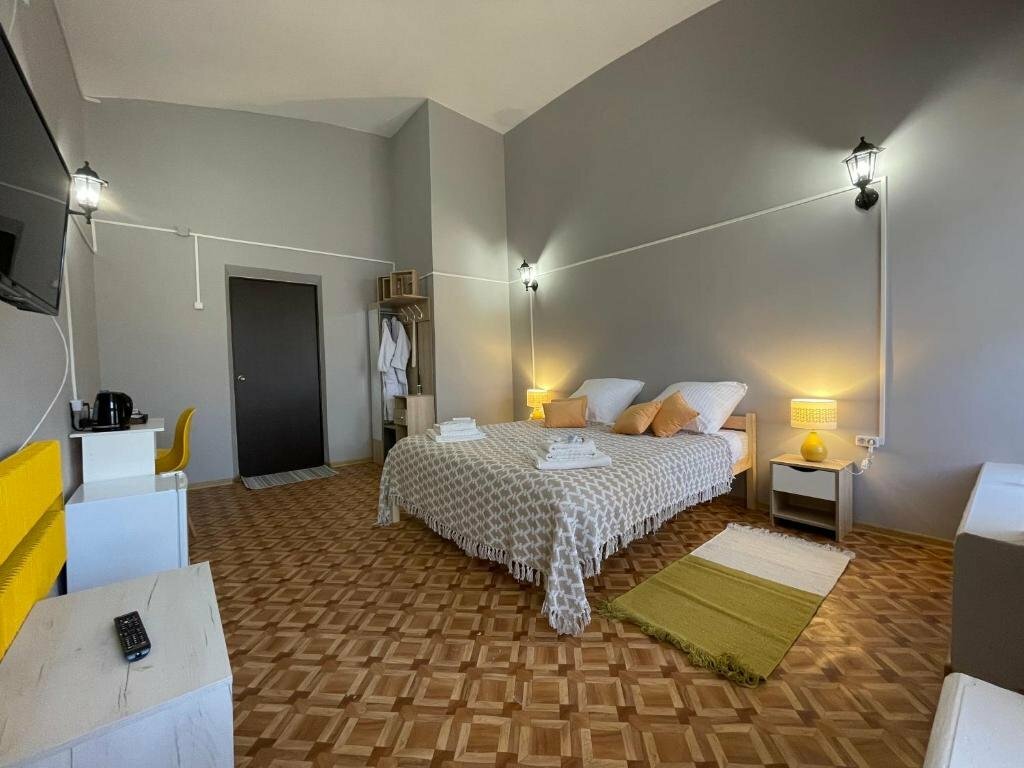 Просторный номер с двуспальной кроватью (можно раздвинуть) и раскладывающимся диваном.