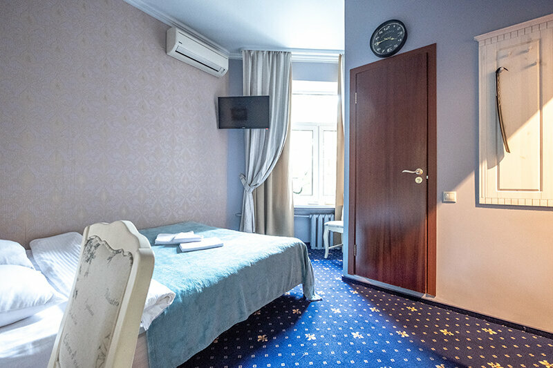 Отель расположен на третьем этаже, окна на Чистые пруды. В здании ещё несколько отелей и организаций, проход через турникет и охранника, не очень комфортно. Заселение было позднее ни охранник на проходной, ни администратор отеля особого радушия не проявили. Номер люкс — небольшие две комнаты. В гостиной диван и кресла, состояние мягкой мебели ужасное, всё грязное и в разводах. Диван был чем то залит, на что обратили внимание администратора, в ответ получили массу негатива и предложение вообще не заселяться, если нас что-то не устраивает, только деньги за бронь не вернут. В спальне постельное белье чистое, но очень поношенное, с дырами. Подушки плохие, давно пора заменить, дополнительные одеяла все жёлтые в разводах. В номере есть кондиционер, телевизор, холодильник, чайник, сейф. Небольшой частный отель, в очень хорошем месте, с прекрасным дизайном, но из-за грязи, изношенности и поведение персонала складывается отрицательное впечатление!
