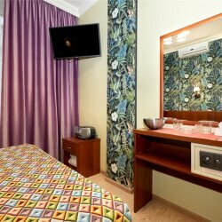 Ужасно, я пришла с семьёй на 2 дня, мы заходим в номер, а там люто пахло хлоркой, это ужасно, я не понимаю почему все хвалят.