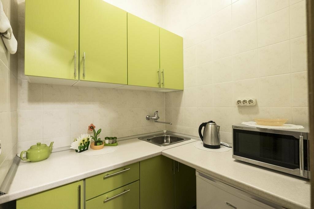 - Наличие кухонных принадлежностей (чайник, микроволновка, холодильник).