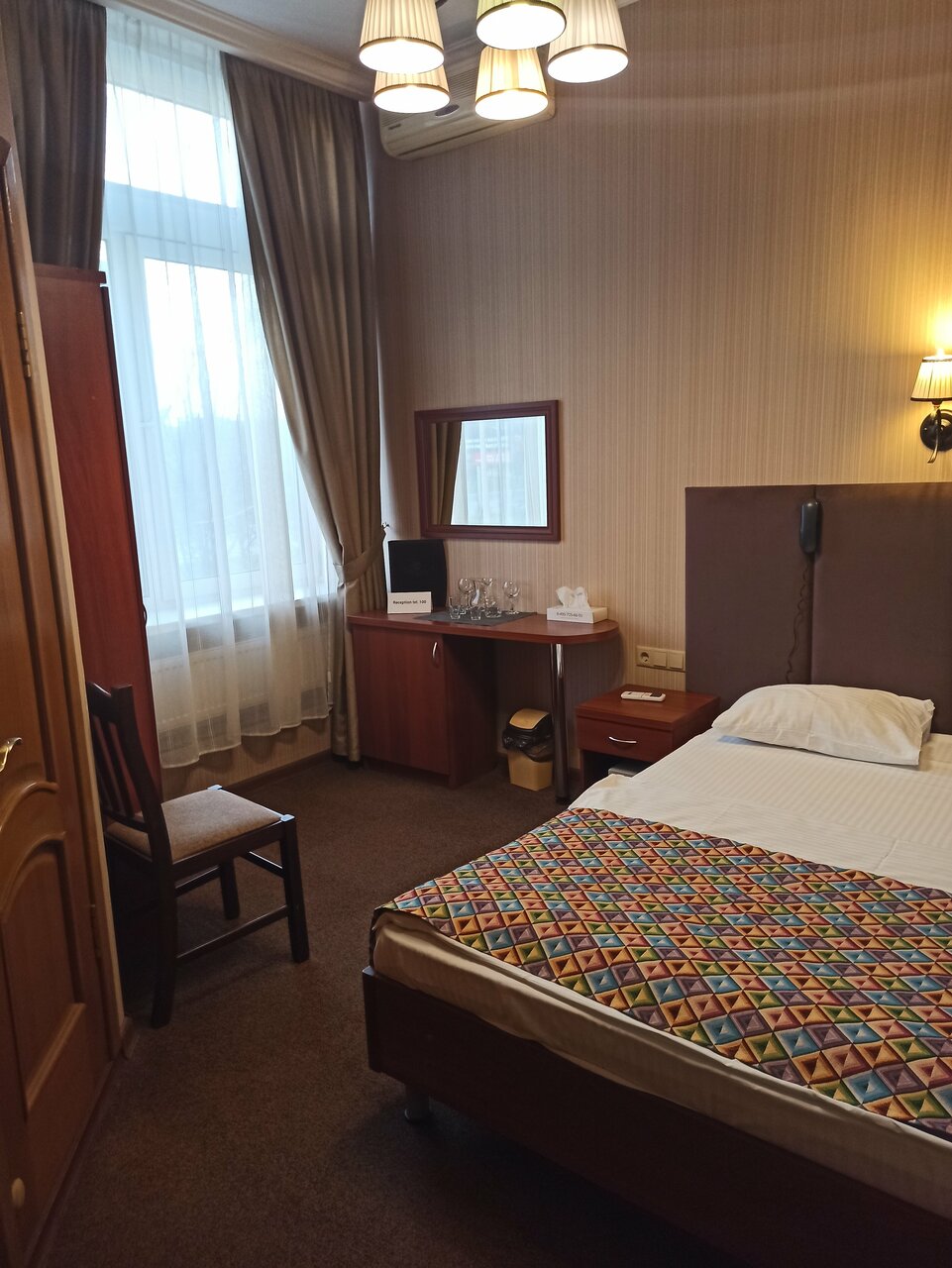 16 августа заселились в номер с грехом пополам, так как бронь идёт через один сайт, а у самой гостиницы другой…. По телефону 101 что у них недозвониться, а если дозвониться будет праздник… Номер люкс 2к сам по себе отличный, за такую сумму, но в номере убирались как будто лет пять назад… Пыль, грязь, следы обуви возле кровати… За телевизором слой пыли пол см почти…