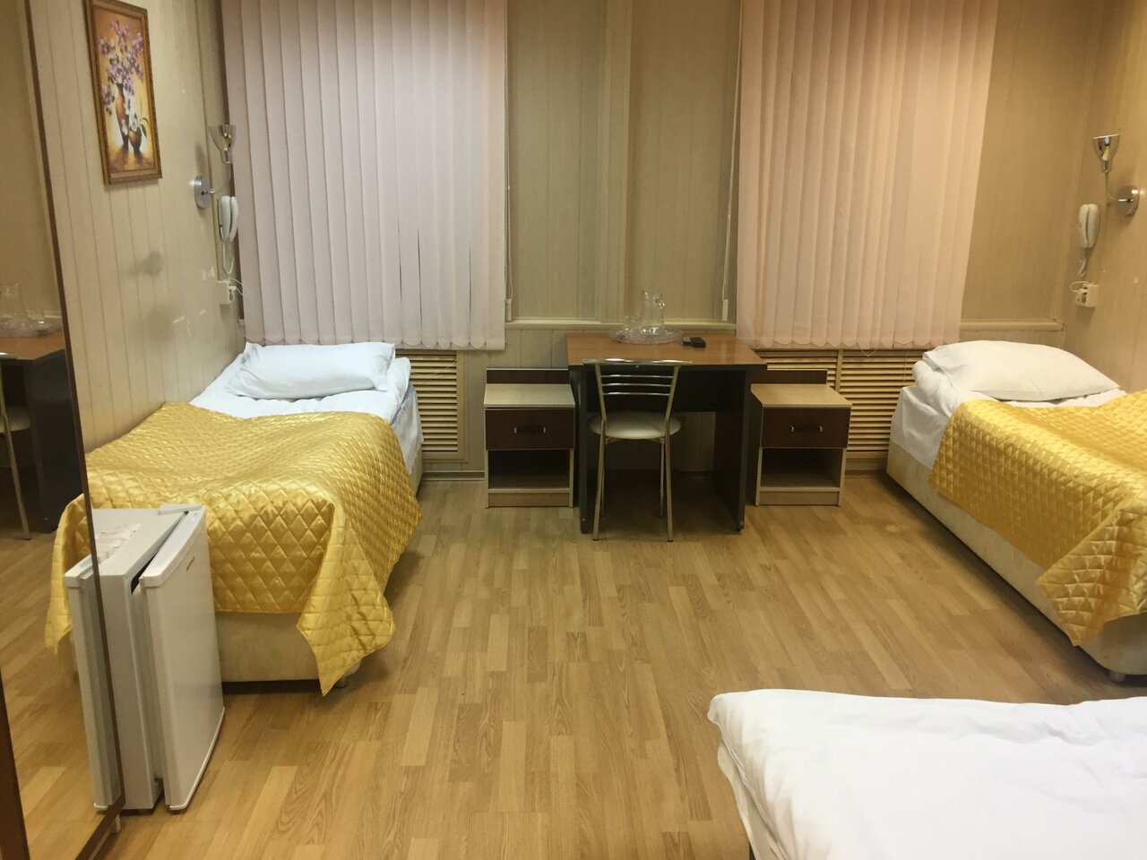 Гостиница полный обман. Фото номеров в Яндексе, как я понял — это 1-2 отремонтированных номера на всю гостиницу. Причем эти фото прилагаются ко всем бронированиям. Меня заселили в номере где пахло какой-то химией ужасной, в холодильничке маленьком кто-то однажды точно забывал мясо и он пах тухлятиной, но это никого не смущало. Кровать просто ужас. Сан узел грязный. Везде голубые больничные стены и абсолютно советский ремонт с потертой мебелью. Кроме того, персонал совершенно не знает законов. От меня отказались принимать любые письменные претензии. Был вынужден писать претензию в книгу отзывов. Кстати кафе на фото им не принадлежит. В общем колхозный совок в центре Москвы, извините за выражение Заселяться отказался и пошёл в хостел неподалеку который вышел мне в 2 раза дешевле и в 5 раз лучше.