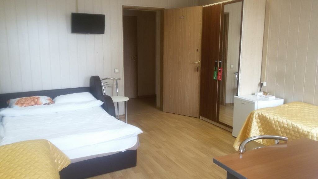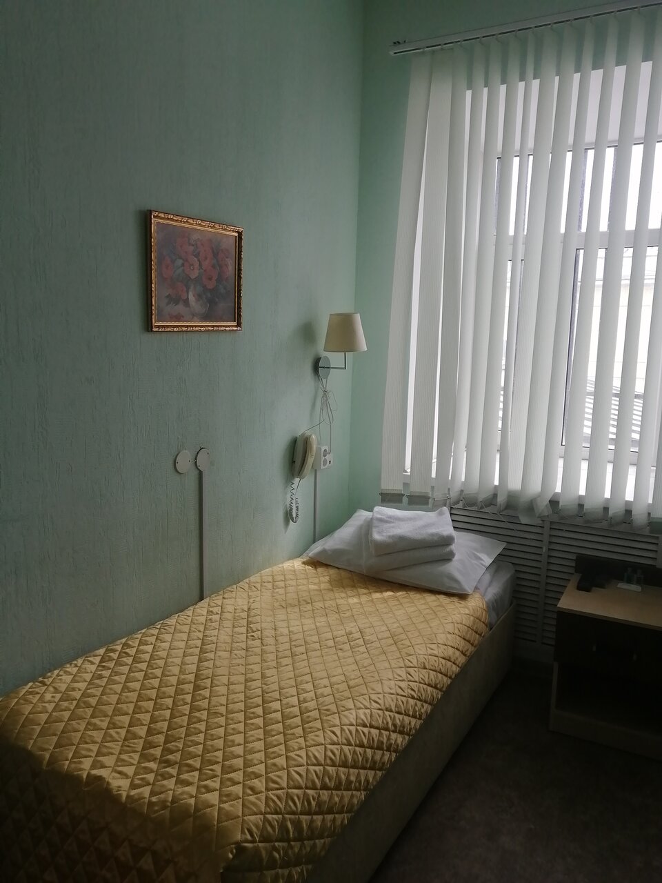 В целом неплохая гостиница, удобное местоположение, рядом много кафе и магазинов, приятный персонал, номера на 4(если ты не зажравшийся), одекватный ценник 2500 одноместный номер,из минусов; санузел(приличный) на 2 номера и кровать немного маловата