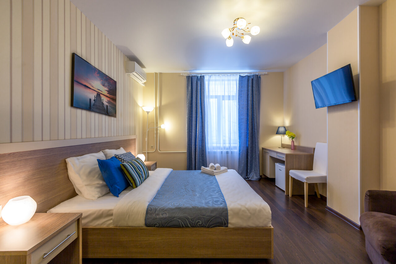 Арендовал номер стандарт . Остался очень доволен. Номер просторный . Все необходимое есть, а главное цена не кусается. В шаговой доступности метро и торговые центры.