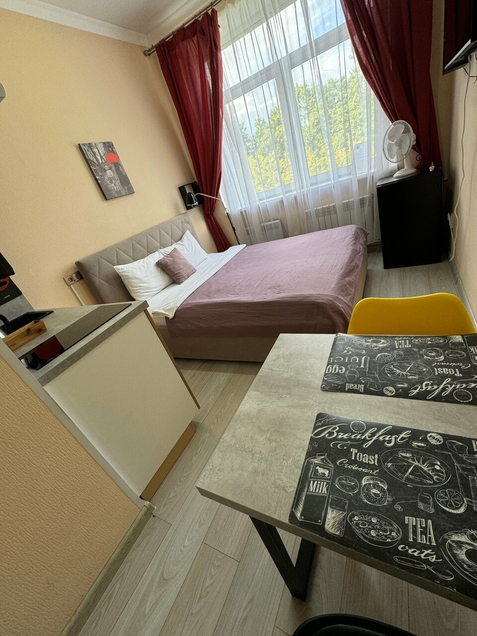 Небольшой аппартамент на территории парка перед Северным Речным вокзалом. 3 спальных места — удобная большая двуспальная кровать наверху, диванчик внизу. Чисто. Большое окно. Миникухня с мойкой, чайником. Плиты нет. Посуда -чашки, тарелки, ложки и т.д. есть. Ванная с душевой, очень небольшая, но все чисто. Заселение удалённо- мы отправили депозит 2 000 руб (после выезда вернули), нам отправили код доступа к ключнице у дверей номера, в принципе, все удобно. Здание выходит в прекрасный парк, с фонтанами, цветами, ручным белками (насчитали 20, сбились со счета, гуляя по дорожкам). Мы выбрали это место, потому что приехали на круиз, который стартовал из Москвы, очень удобно, в пешей доступности. Легко добрались до метро Речной Вокзал (минут за 15 пешком с детьми), и там прямая ветка до центра. Правда, рядом нет удобного магазина с продуктами, нужно идти в сторону метро в торговые центры. В целом, место очень понравилось, хотим здесь и дальше останавливаться.