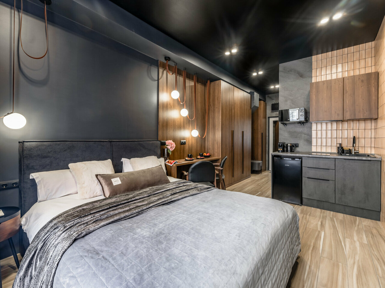 Хороший отель, выбирал между двумя номерами на 2 и 4 этаже, все оказались новыми, один двухэтажный с высокими потолками, второй одноэтажный но потолки тоже высокие. Быстрый интернет, у Администратора (Елена) заказывал еду из ресторана, вкусно и быстро, приятный мини-бар. Из минусов платная парковка, но можно договориться через администратора за 500 в сутки рядом стоянка.
