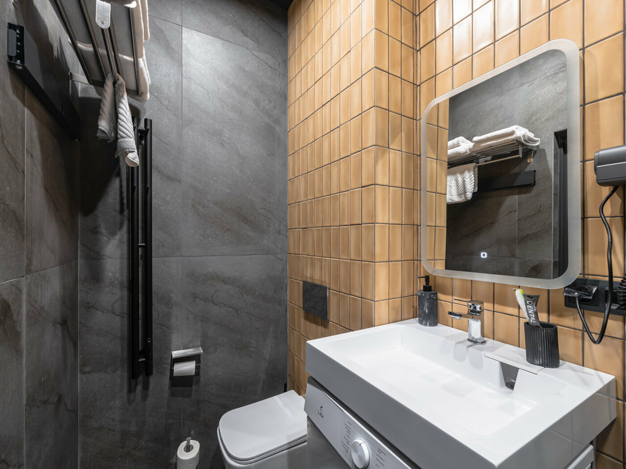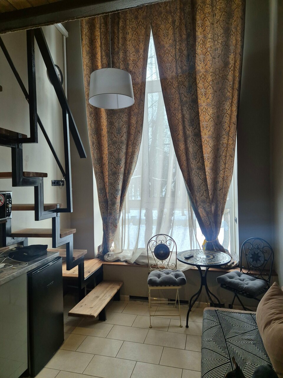 Двухуровневый апартамент с дизайнерской отделкой. Окна в парк на солнечную сторону. Сдается на срок от 1 суток. В номере все необходимое для комфортного проживания и работы. Есть кухонный гарнитур с техникой и посудой, санузел с душем