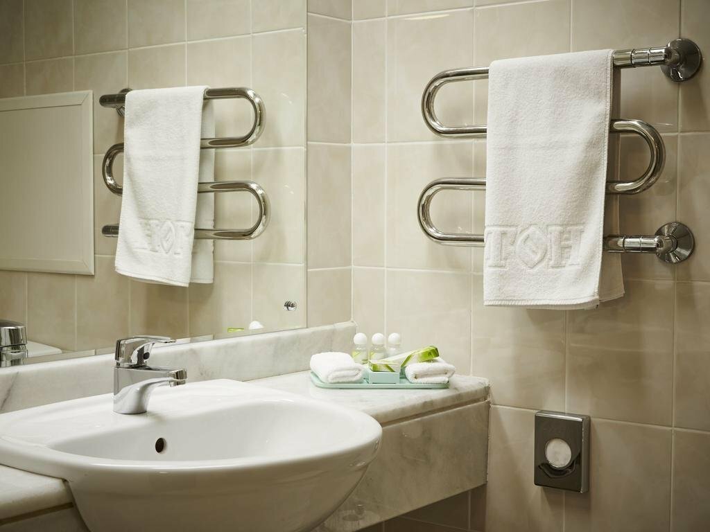 Хоть и присвоили 4*. Не дотягивает даже до 3*. Советский отель. Номера для некурящих, но в номере чувствовался запах, проветривание не помогло. Через несколько минут запах вернулся. Звукоизоляция отсутствует. При номере для двоих — одеяло на кровати для одного. Второе нашли в шкафу, но без пододеяльника. Телевизор маленький, и каналов не больше 10-15. Есть кружки, но ни чайника, ни чая, ни кофе нет. Вода в туалете и в ванной уходит медленно. Нет халатов. Нет сейфа в номере. Есть кулер на этаже, но воду вовремя не дополняют. Говорилось о круглосуточном баре/ресторане в лобби отеля. Но в ночь с 3 на 4 января было закрыто, ни выпить, ни покушать было не возможно. За эти деньги есть более выгодные варианты. Из плюсов только бесплатная парковка.
