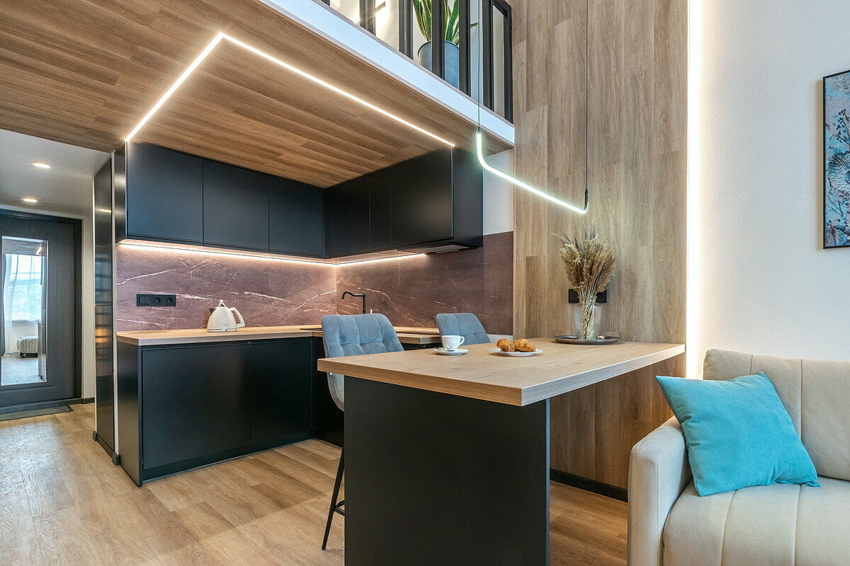 Приезжал в командировку и поэтому начну с начала: - бронирование номера не вызвало никаких проблем, всё быстро чётко и своевременно; - заселение удалённое, но тоже всё достаточно комфортно и понятно организовано; - в номере чисто, современно и уютно, есть всё. Кухня укомплектована на 5 (есть даже пакетики фасовочные и остальные мелочи). Ванна тоже на 5 (шампунь, кондиционер и гель для душа, даже бумаги туалетной куча ) короче укомплектовано всем; - ну и отчётные документы (что очень даже важно для командировочного) все есть. Отзыв не выдумка, а от души. Проживал в 230 номере.