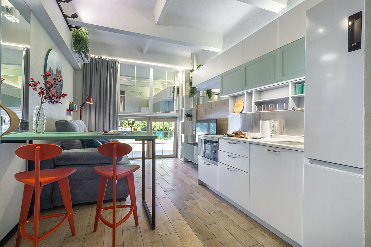 Отличный апартаменты! Онлайн заселение, оплата после того как вы увидели куда заселяетесь. Первый взнос при бронировании (симвалическая оплата), за сутки до заселения вносится депозит. Об апартаментах- идеальное место для проживания! Я в восторге! Полностью соответствует описаниям и фото, чистое постельное и полотенца. Кухня оборудована хорошей плитой, есть посуда, сковородки, кастрюли, и т.д. стильная машинка, утюг, фен, холодильник, микроволновая печь. Номер чистый, интерьер уютный. Если возникают вопросы, с вами всегда на связи помощник. Расположены апартаменты в 10 минутах хотьбы от Приорова, и 30 минутах езды до Шереметьево. Метро тоже в шаговой доступности. Номера разные, каждый сможет выбрать на свой вкус и бюджет! Всем советую!