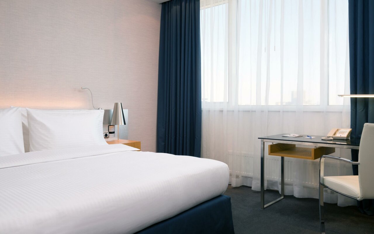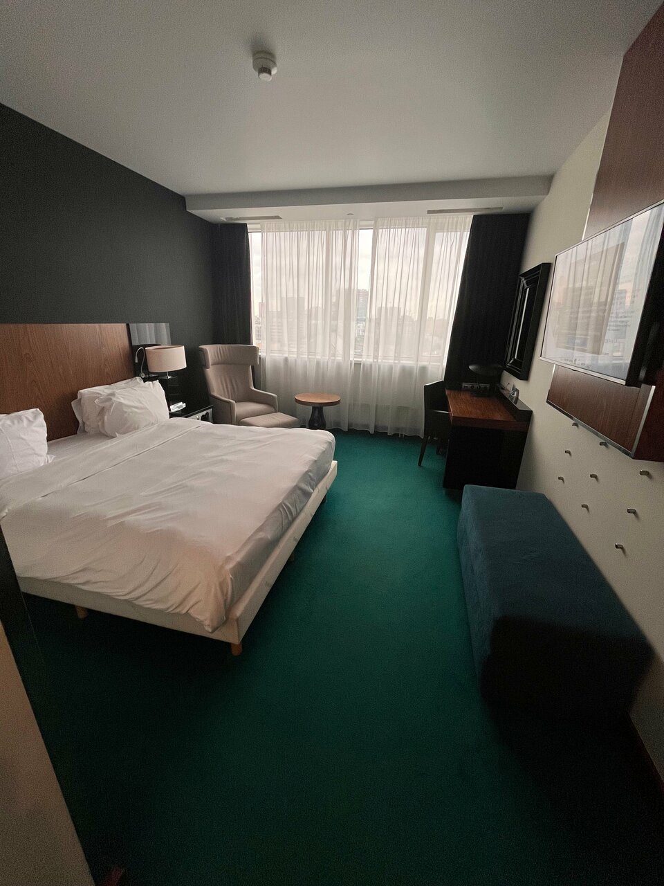 Это самый ужасный редиссон из всех, в которых мы были! Номер с видом на город стоит дороже, но сам номер внутри, мягко говоря, в удовлетворительном состоянии, вонь сигарет и шум всех соседних номеров заставят вас буквально чувствовать себя как на улице. WiFi в номере не работает, а если у вас сел телефон и нет зарядки- отель не сможет решить эту ужасно сложную задачу и typeC кабель вам не смогут принести. Детскую кроватку мы просили при бронировании, но получили ее только после трех звонков на ресепшен, уже к вечеру. Но и Оказалось, что детская кроватка, это железная раскладушка, так что ребенок все равно спал с нами. Душ старинный и купаться пришлось держа душ в руке. Ванна грязная, так что ей даже пользоваться страшновато. Ключ от номера приходится вставлять в лифте и в номере по несколько раз, пока не сработает. 4 звезды тут просто придуманы, это уже гостиница уровня максимум 2 звезд.