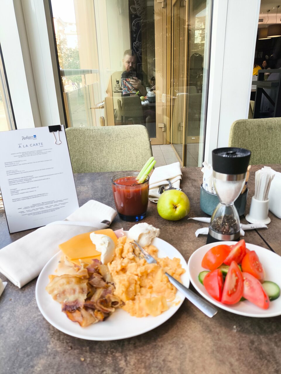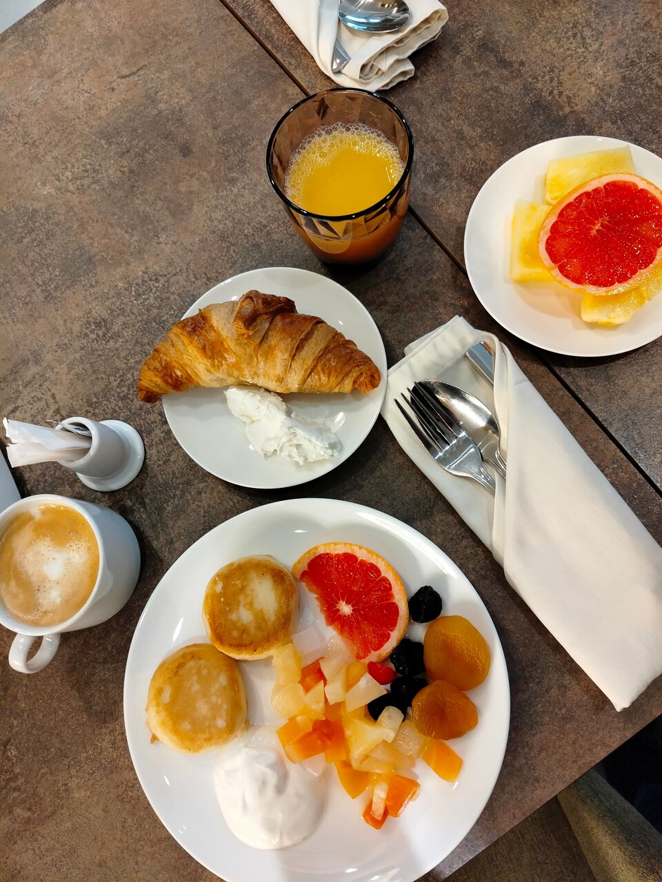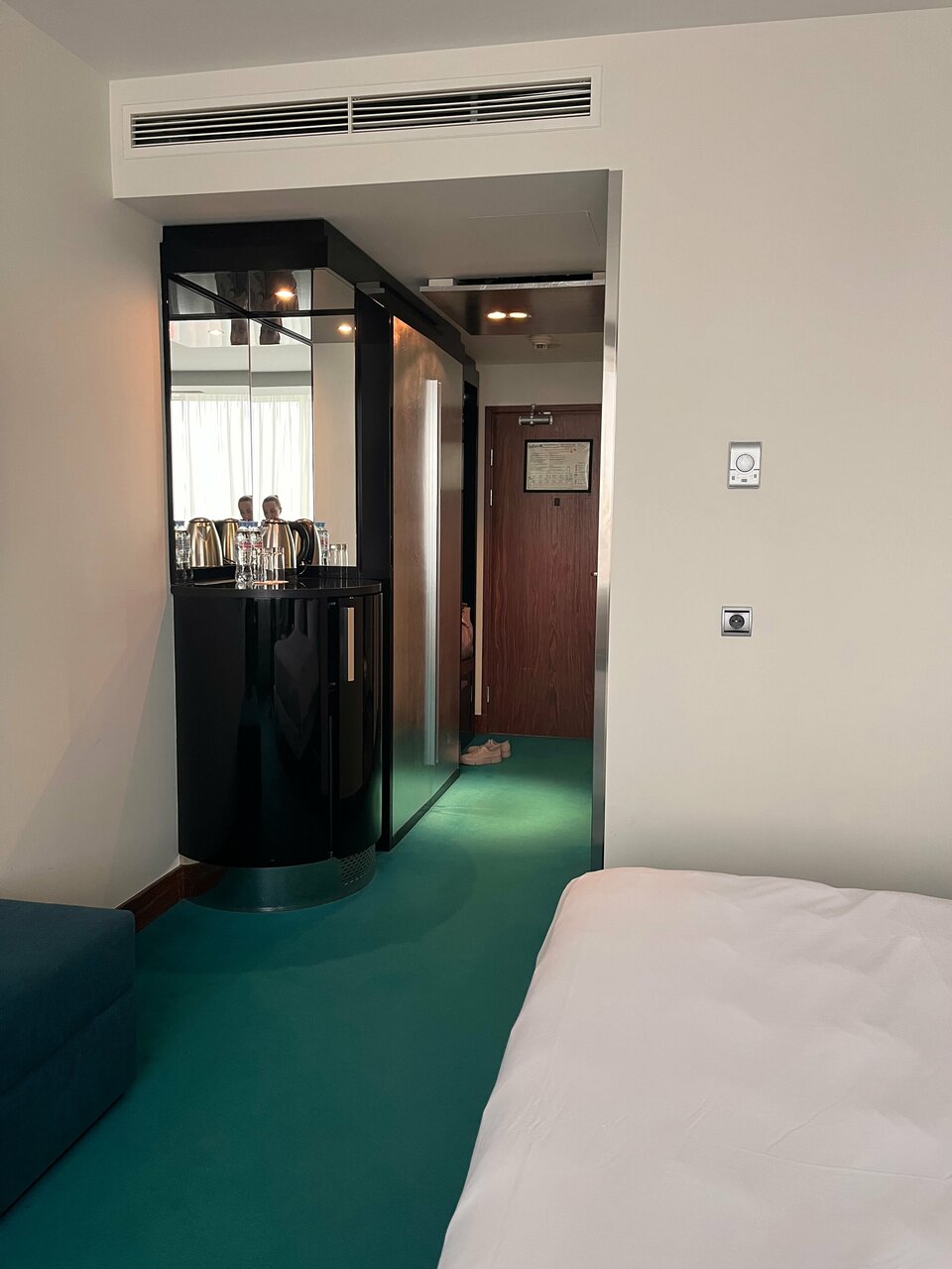 Приятный отель, хорошего класса. Номера ухоженные, брал city view, действительно красивые закаты и рассветы. В номере есть чай, капсульная кофе машина, телевизор с ютубом и удобными сервисами для заказа разных услуг в номер. В номер была и ванна и душевая. Очень хорошие, вкусные завтраки, вроде стандартные европейские, но есть разнообразие и продукты хорошего качества. Из минусов — дорогая парковка рядом с отелем, 1800р в день.