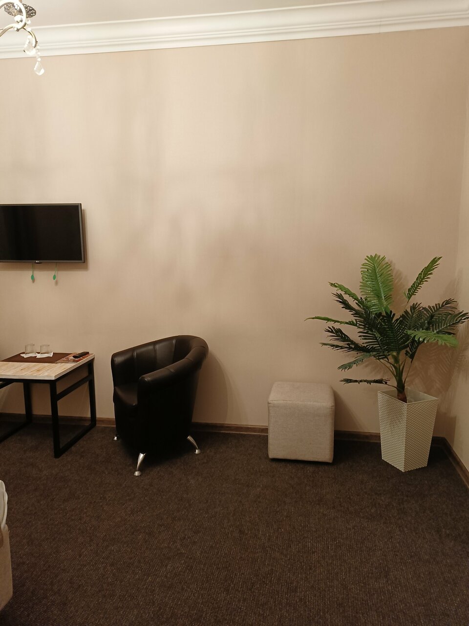 На мой взгляд гостинница не для долгого проживания. За косметическим состоянием номеров плохо следят, в одном номере стоял запах бабушки, во втором запах канализации. В моем номере было битое окно и очень плохо работала фурнитура, стены грязные. В номере из удобств туалет, душ, фен, кровать и телевизор. Номер у меня был полулюкс — это около 15 кв., очень маленькая площадь. На завтрак кормят хорошо, меню обговаривается индивидуально, приносят в номер. Отель на переночевать и до любителей услуг ночных бабочек, которых было замечено немало))