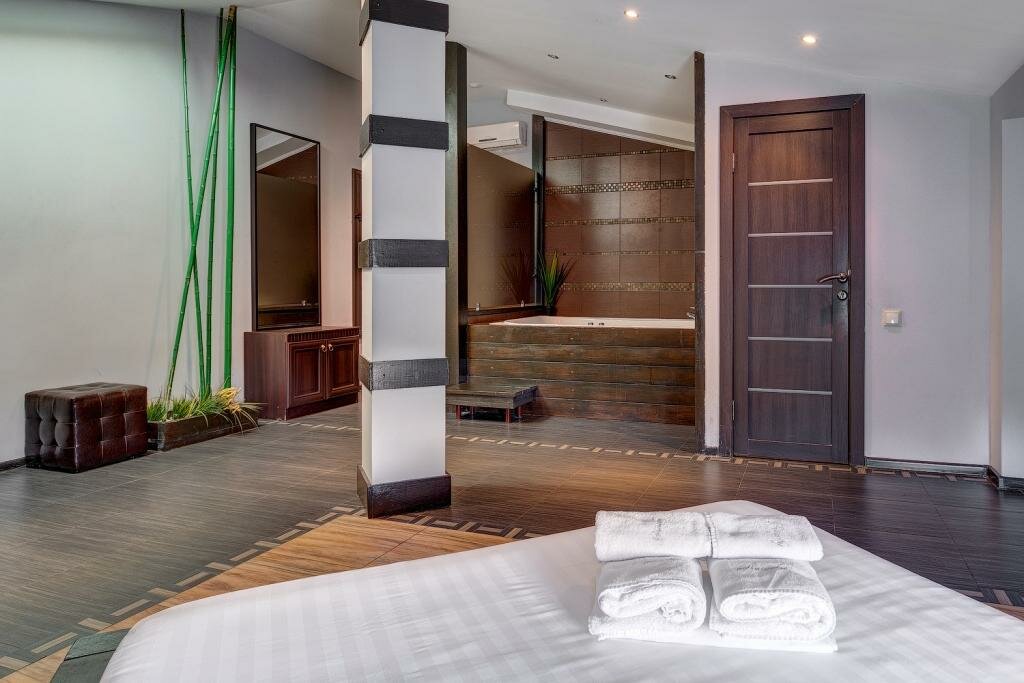 Супер! Шикарный номер за приятную цену. Просторная душевая, тепло, красиво, очень уютно. Вкуснейшие десерты в ассортименте, напитки. Поблизости есть магазины. Вежливый персонал. Осталась очень довольна. Рекомендую!