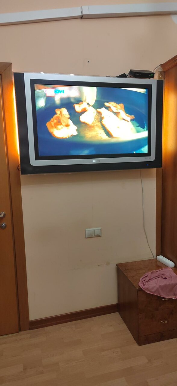 - Есть все удобства (душ, туалет, кухня, холодильник, телевизор).