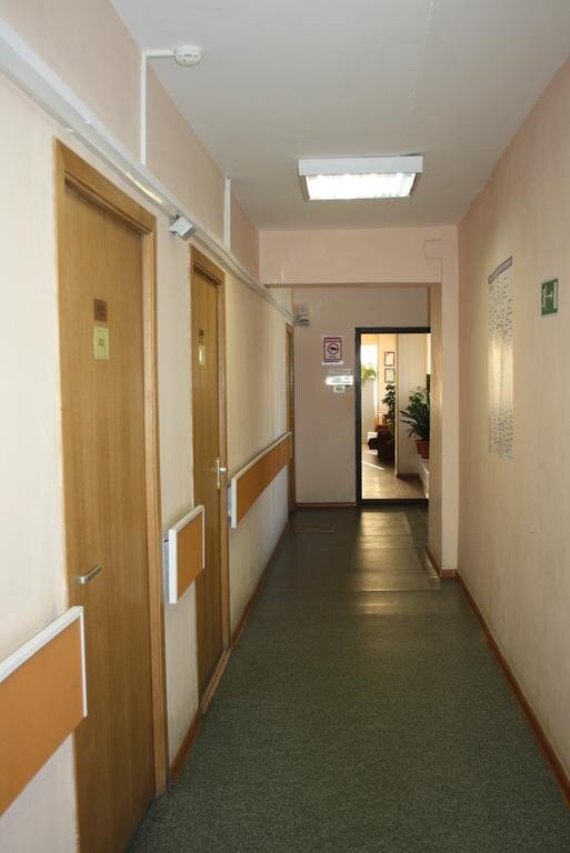 Расположена на 5-6 этажах института, есть микроволновая печь на 5 этаже, кулер на обоих этажах. В номере есть все необходимое для проживания: телевизор, холодильник, стулья со столом, графин и стаканы, свой санузел. Выдают шампунь и мыло на количество человек в номере в сутки. Уборка каждый день. Тихо, вежливый персонал, близко от метро, рядом продуктовые магазины. На 1 этаже столовая и кафе. Останавливались с ребёнком, все устроило.