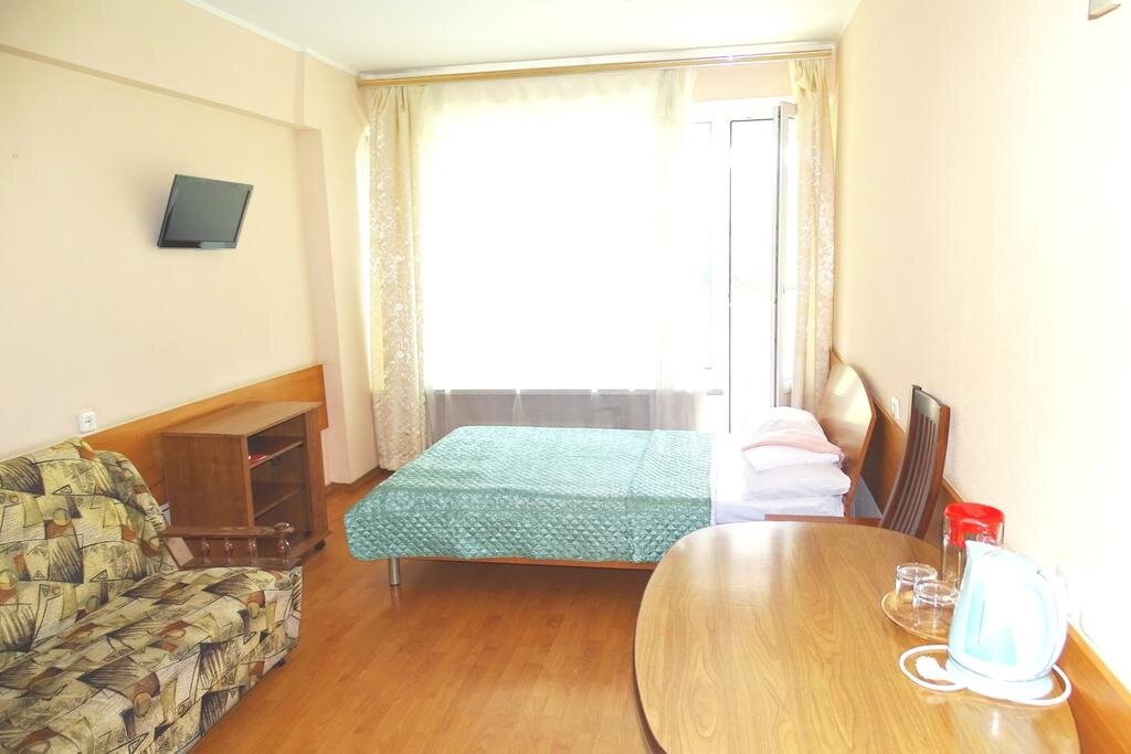 - Полный набор необходимого в номере (холодильник, телевизор, мебель).