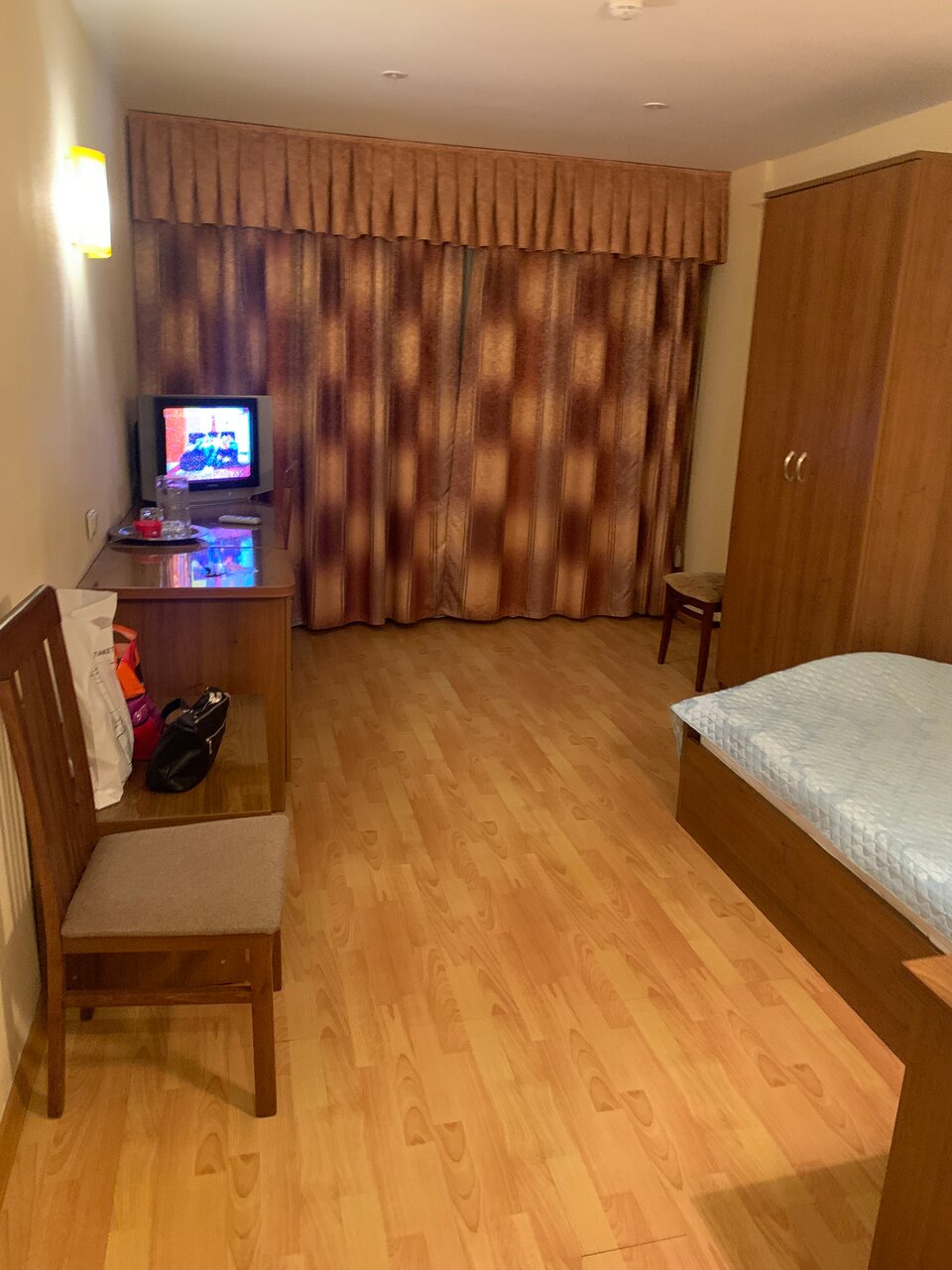 Небольшой ценник для места расположения. Но с трудом соответствует требованиям в отелях. Номер обставлен мебелью из 60-ых, наверно. Грусть-тоска, одним словом. Больше похоже на студенческое общежитие.
