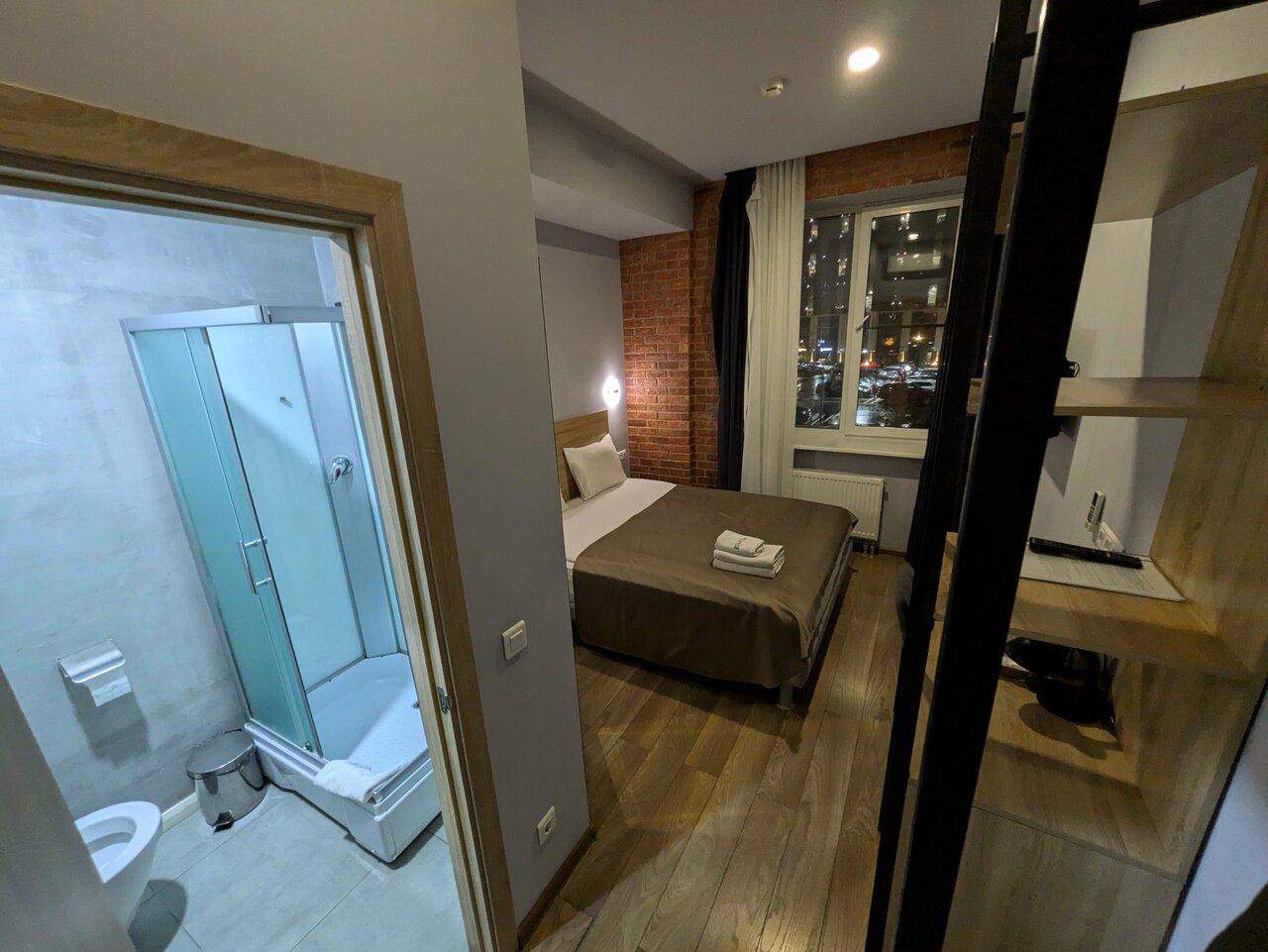 Небольшой отель в стиле лофт. До метро 20мин. пешком. Одноместный номер небольшой, но для ночлега нормально. В самом здании отеля и рядом много ресторанов.