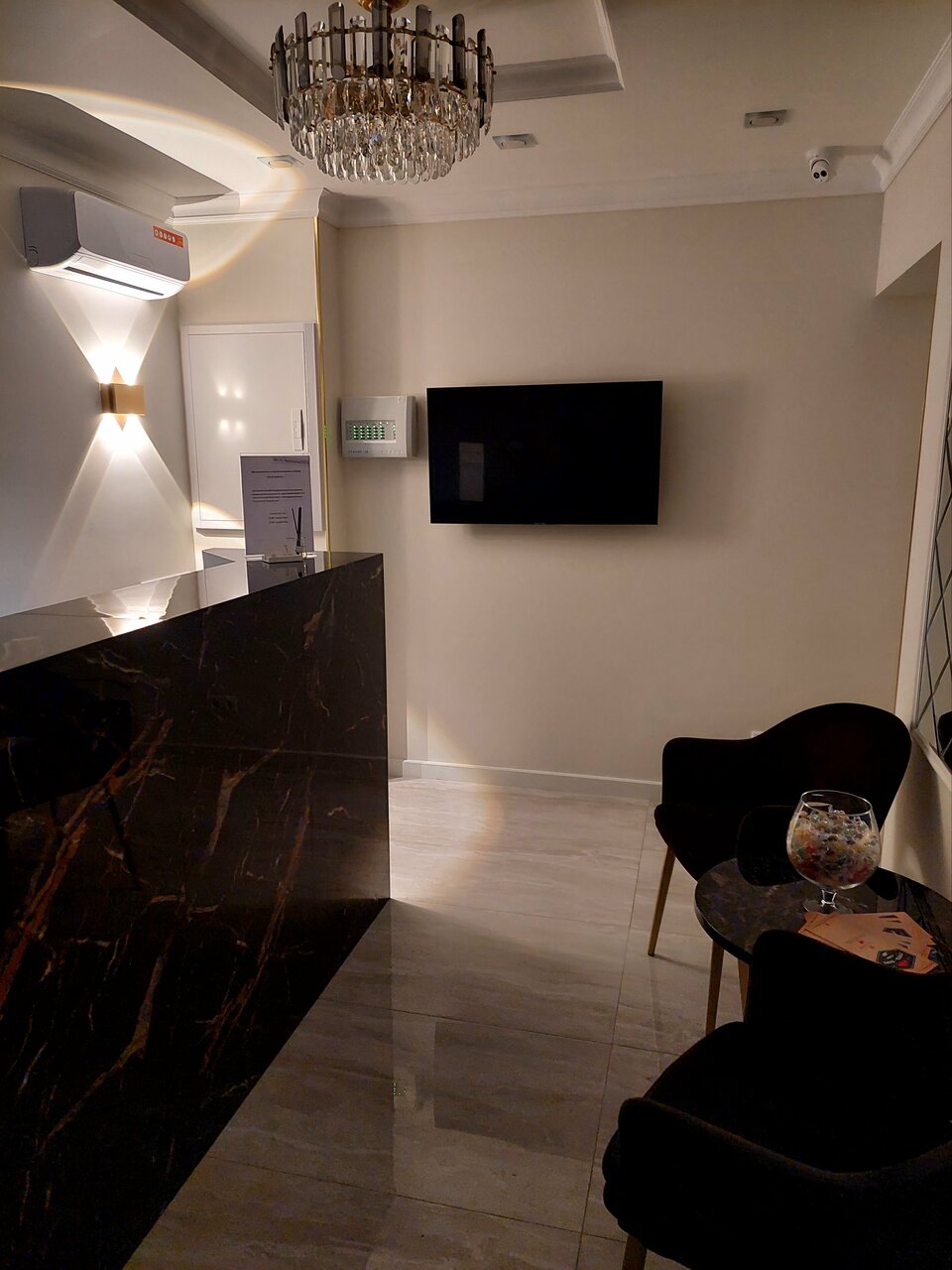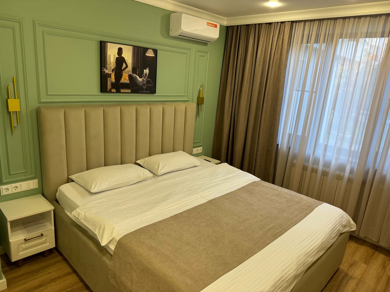 Современный ремонт, новая мебель, чисто. Есть бризер в номере. У ресепшен есть кофе бар и микроволновка. Без завтраков комфортно. Был номер полу-люкс — оочень жесткий матрац. Не выспались, спина отвалилась. Поэтому минус 2 звезды в оценке. Отель находится на 1м этаже жк, можно припарковаться. Но вечером, пока стояли у входа- в метре от нас прилетела с верхних этажей полная стеклянная пивная бутылка. Видимо кто то не доволен таким соседством