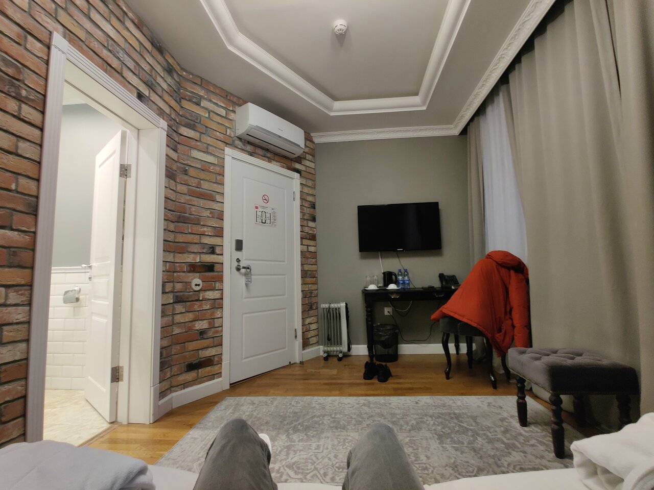 Уютные стильные номера, приветливый персонал, вкусный завтрак. Очень удобное расположение. Из минусов — платная парковка и не очень хорошая шумоизоляция.