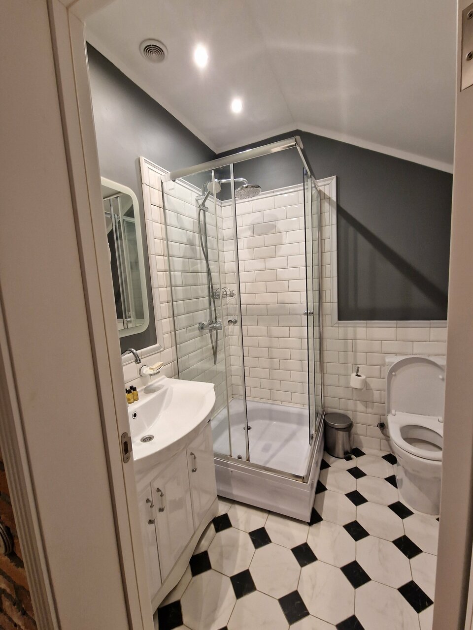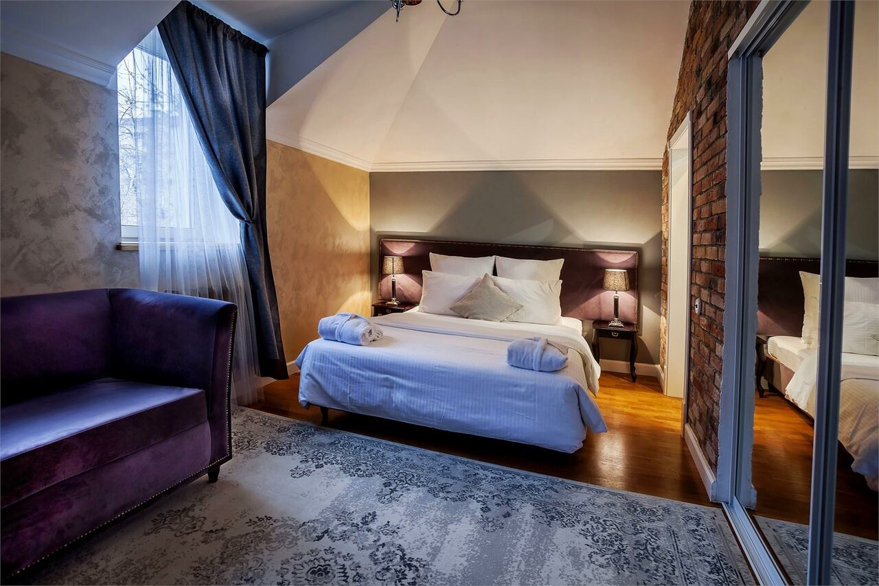 Очень приятный и маленький отель в старом особняке. Хороший уютный номер, мы там жили в троем с супругой и дочерью — было не напряжно. Проживание было с завтраком — его можно выбрать, готовят вкусно
