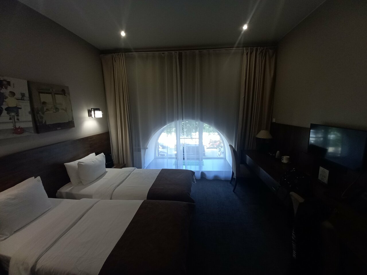 На фото номер выглядел гораздо больше, была выключена батарея в ванной и из-за этого было очень холодно вначале. За это звёздочку сняла — можно было бы к приезду гостей включить, бронировала номер заранее. Всё остальное -очень хорошо, чисто, есть всё необходимое, вкусный разнообразный завтрак, приветливый персонал