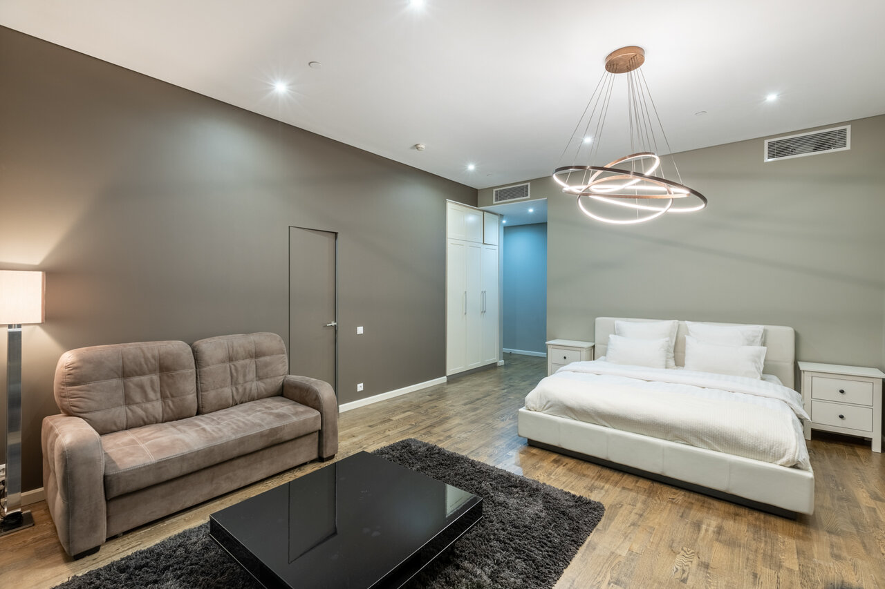 Это не гостиница. 1 Нет удобного способа попадания в апартаменты, надо бегать за карточкой от этажа в ресепшн, который находится в 3х этажах от лифта с которого можно попасть в номер. 2 Нет доступа в паркинг на лифте от которого дают карточку. В паркинг лифт есть только из соседних входов в здание, в которые надо идти через улицу или через весь первый этаж. 3. Нет уборки пока не дёрнуть администратора. 4 раковины забиты, ванная течёт. 5 Софа-диван не раскладная и не собрана, разваливается, части прислонены друг к другу. 6 холодильник забит какими-то продуктами которые тебе не нужны. Свои продукты ставить уже некуда 7 телевизор от кровати висит по диагонали. Смотреть нет возможности.