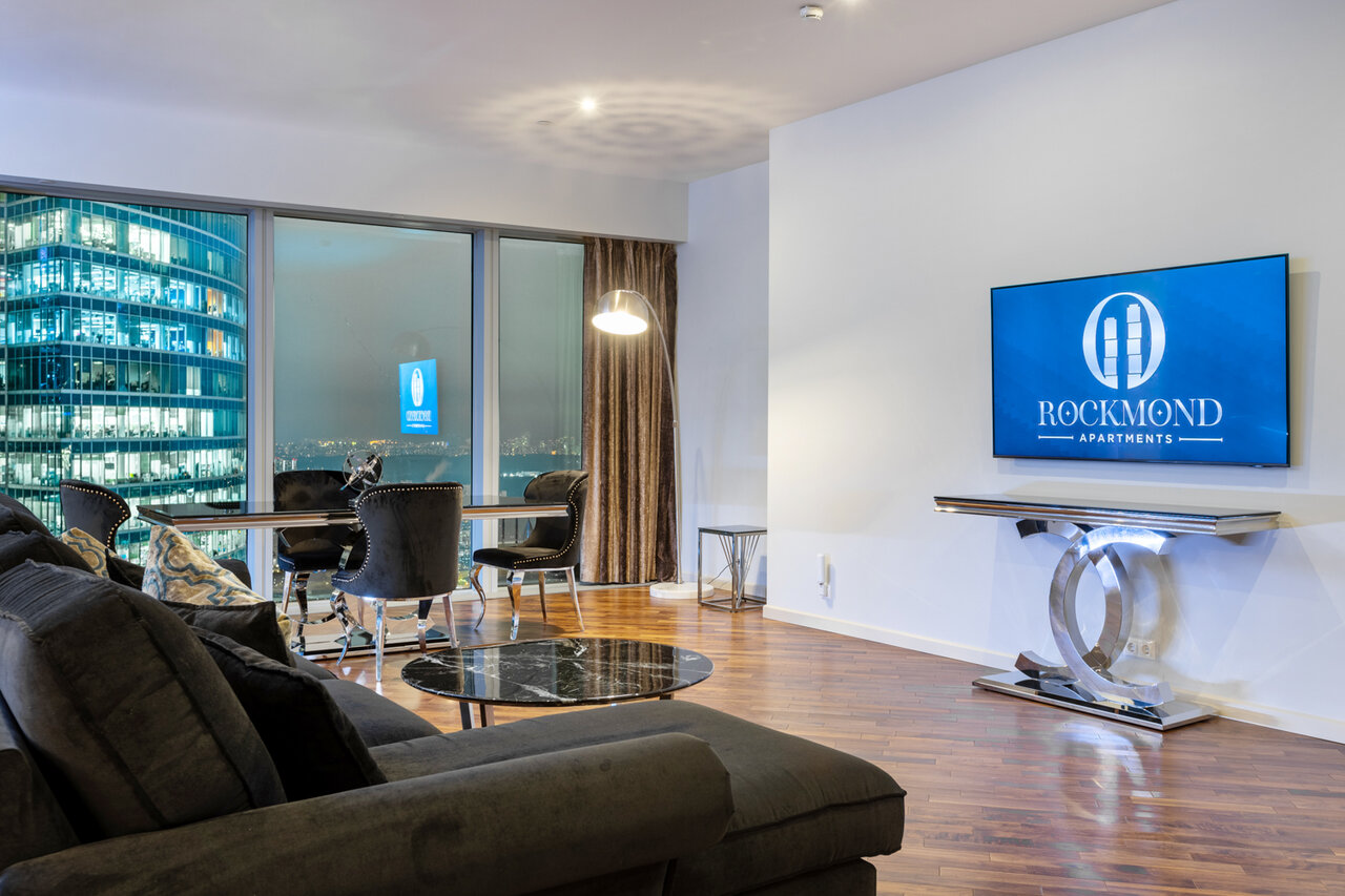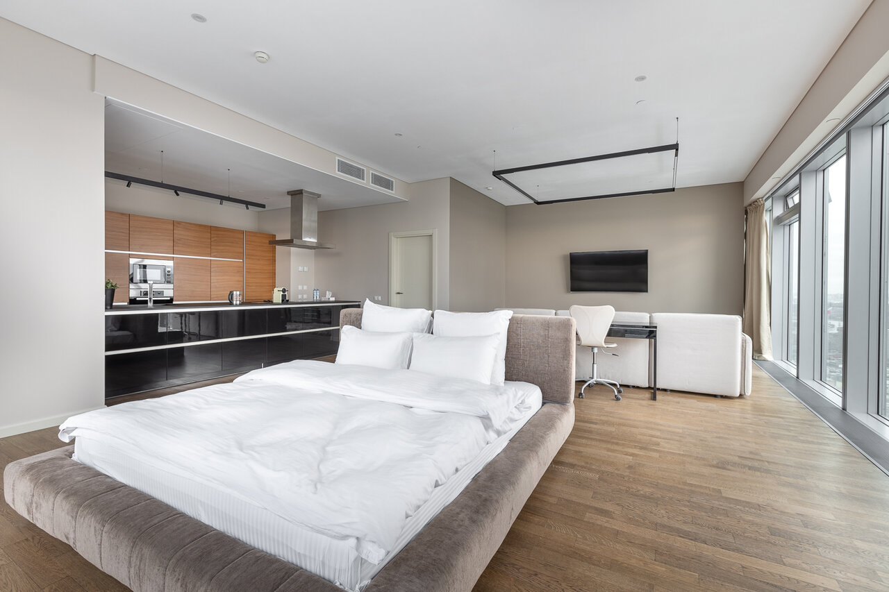 Арендовали на сутки апартаменты на 48 этаже, 484 номер. Очень чисто, имеется посуда (тарелки, фужеры, бокалы, вилки, ложки), кровать, включая одеяла и подушки (impress-просто восхитительны! Спишь как на облачке), зубные щетки и паста, шампунь, гель для душа, тапочки, полотенца, халаты, фен. В кухне установлена хорошая система очистки воды, два отверстия в кране, для мытья посуды и питья- можно пить из под крана. Кофемашина капсюльная, чайник, жаровой шкаф с функцией микроволновки, электроплита, холодильник полный алкоголя и снэков за доп плату. Вид из окна прекрасный! Вентиляция воздуха и температура настраивается как пожелаешь. Джакузи исправно, набирается примерно за час, полтора. Я не хотела уходить из этого прекрасного места.