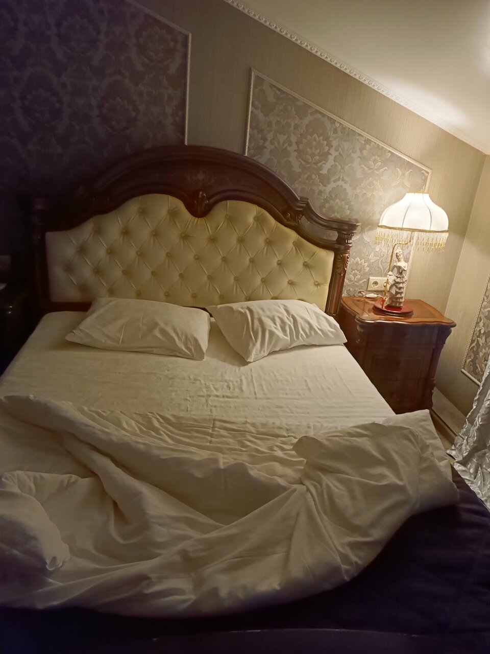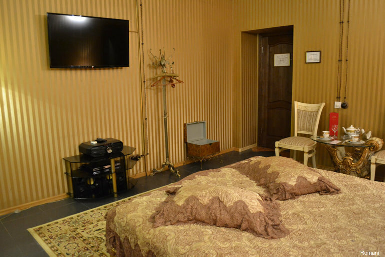Хорошая, уютная гостиница для романтических встреч. Есть разные тематические номера. Номер чистый, есть телевизор и можно заказать еду в номер. На кровати чистое бельё, в душе мыло, полотенца, гель для душа. И есть одноразовые тапочки.