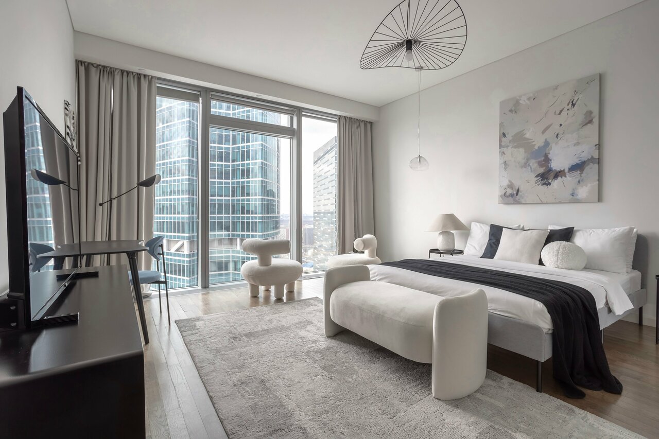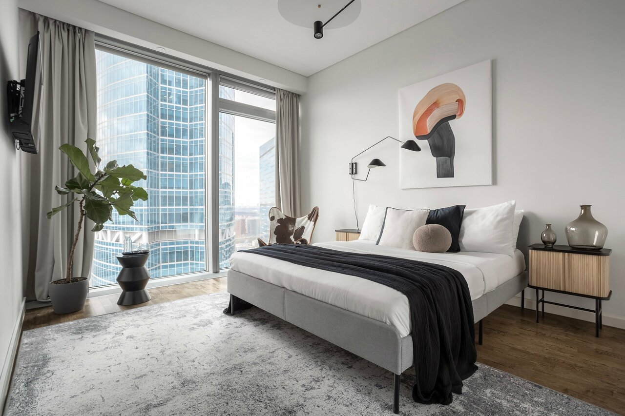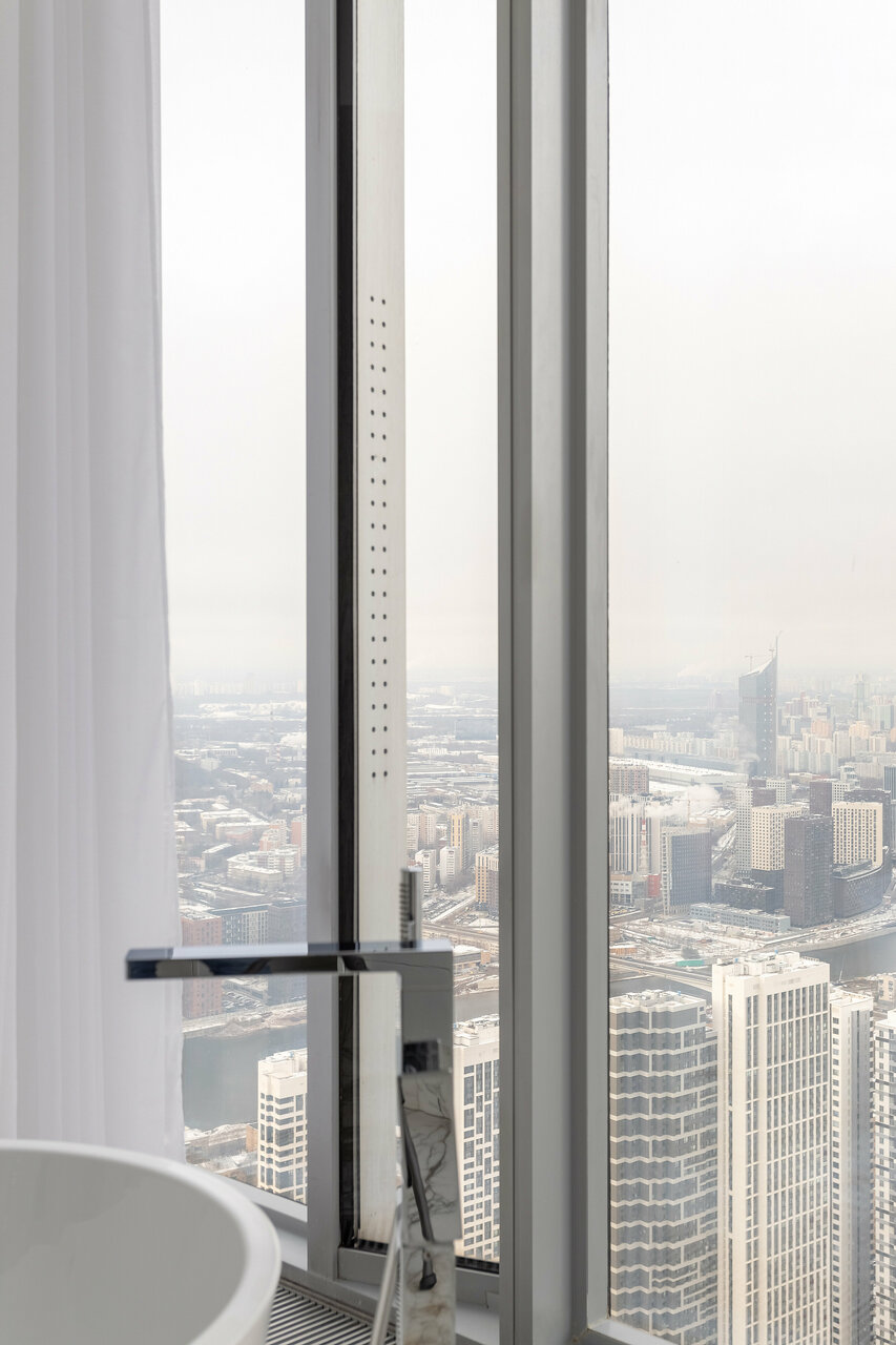 В номере HIGH есть все необходимое. Все, что вам нужно, и ничего лишнего. Идеально подходит для тех, кто хочет насладиться городом с высоты птичьего полета. Из окон номера открывается прекрасный вид на сторону башен Меркурий и Империя.Ванная комн...