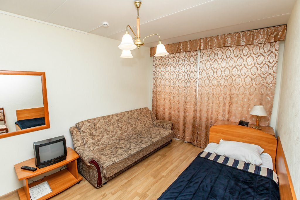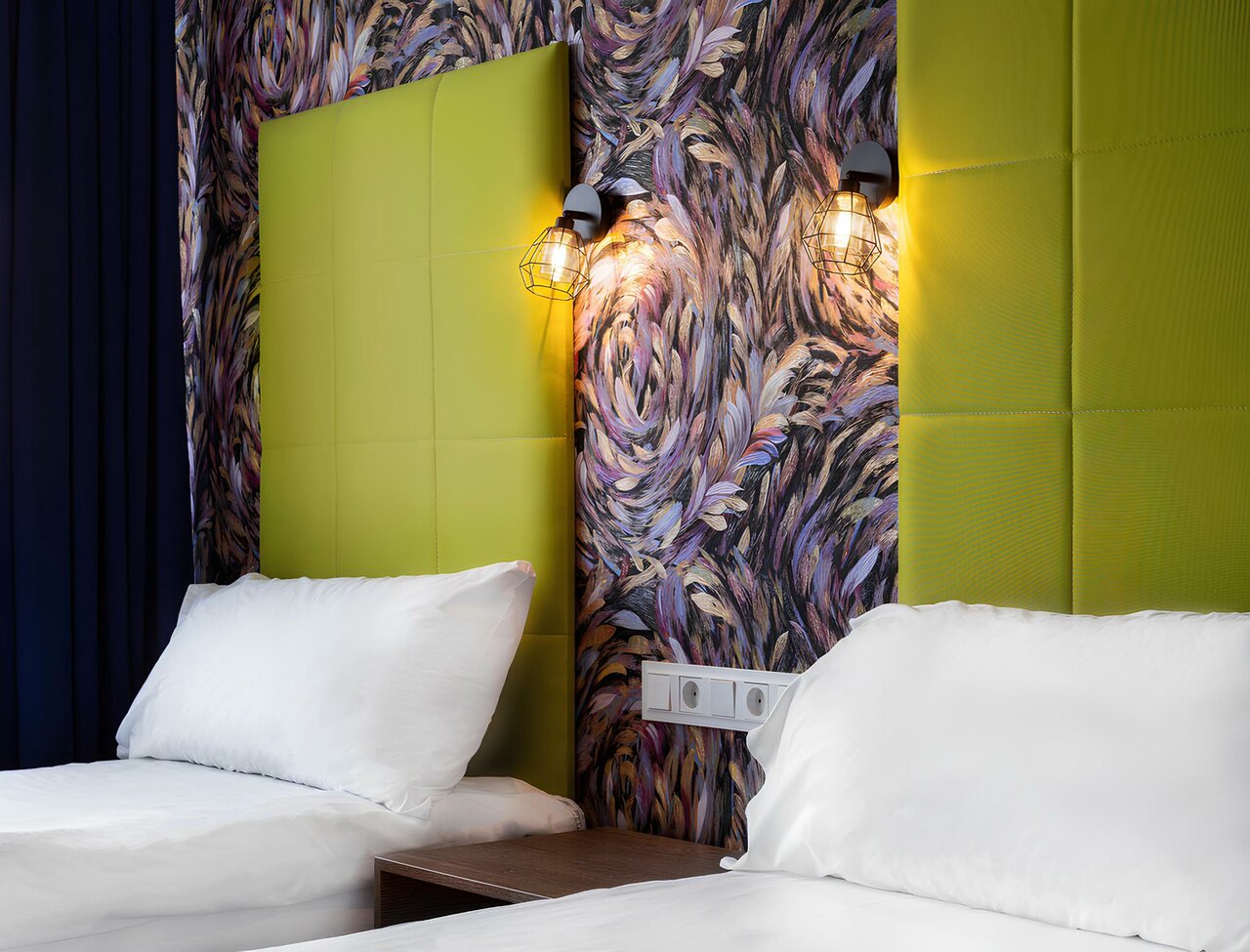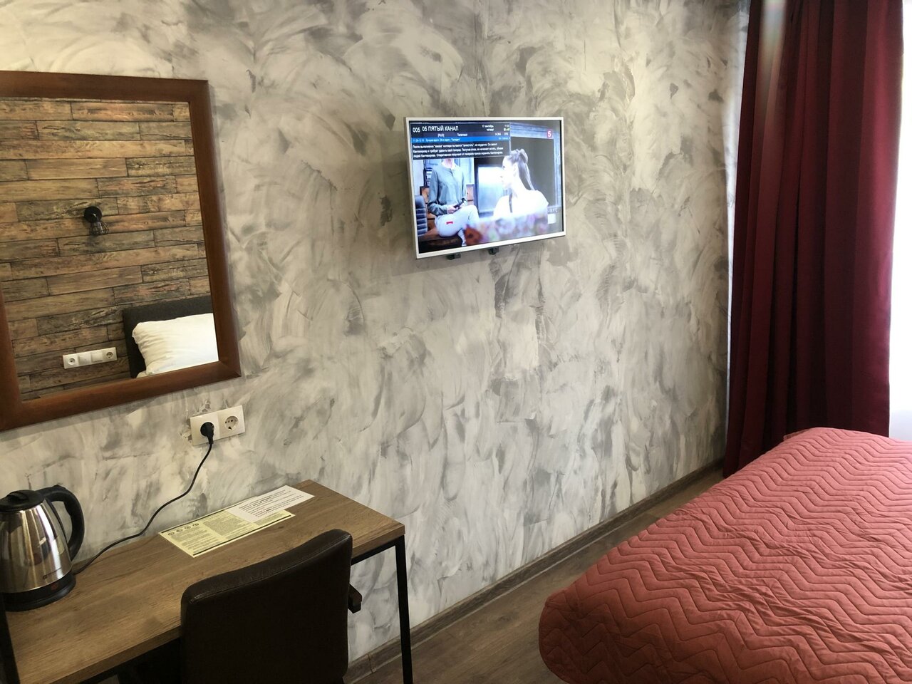 Однокомнатный номер Комфорт с двумя односпальными кроватями, оформлен в стиле лофт и оснащен всем необходимым для комфортного проживания 1-2 гостей с зоной отдыха с Wi-Fi и ЖК ТВ с диагональю более 32'. Общая площадь номера 19 квадратных метров.