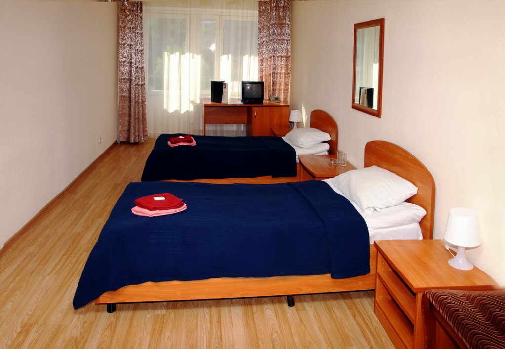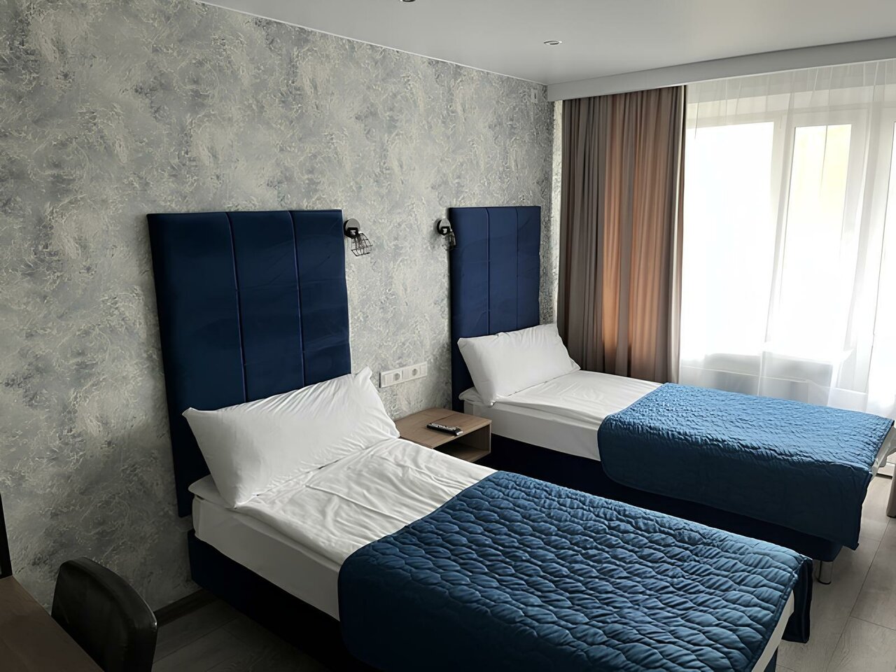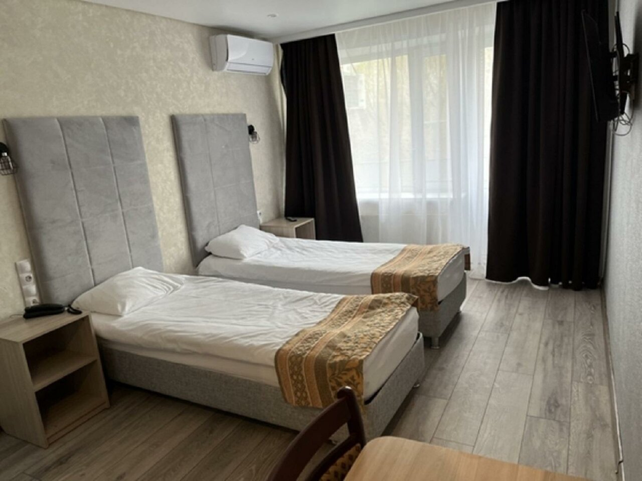 Номер категории Стандарт с двумя односпальными кроватями, рабочей зоной с письменным столом. Классический интерьер - идеальный номер для деловых путешественников и не только. Общая площадь номера 18 квадратных метров.
