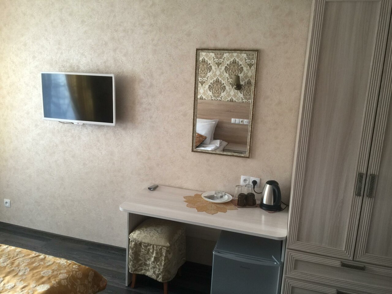 Обратите внимание, что нет фото самой гостиницы, ‘ресторана’ и стойки с нежилыми помещениями. Я по приезду понял подвох, СССР 90 года. В номере очень грязные полы, тапок не нашли ходили всей семьёй в носках (на выброс), запах в санузле жуть, явные проблемы с вентиляцией. Завтрак как сказали по телефону ‘континентальный’, это было очень неприятно да ещё и в такой обстановке… Бельё чистое.