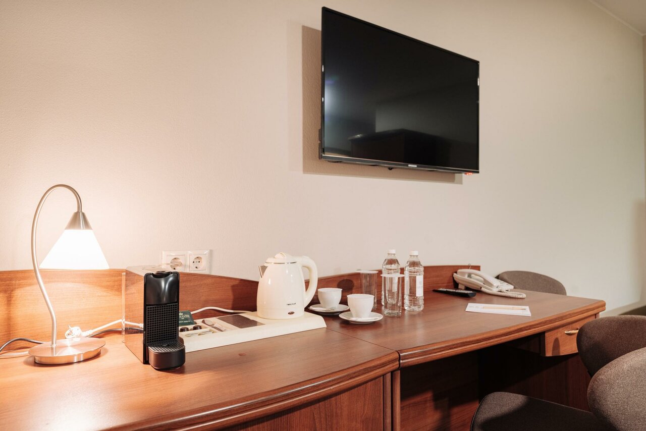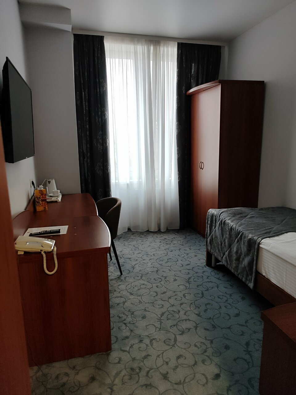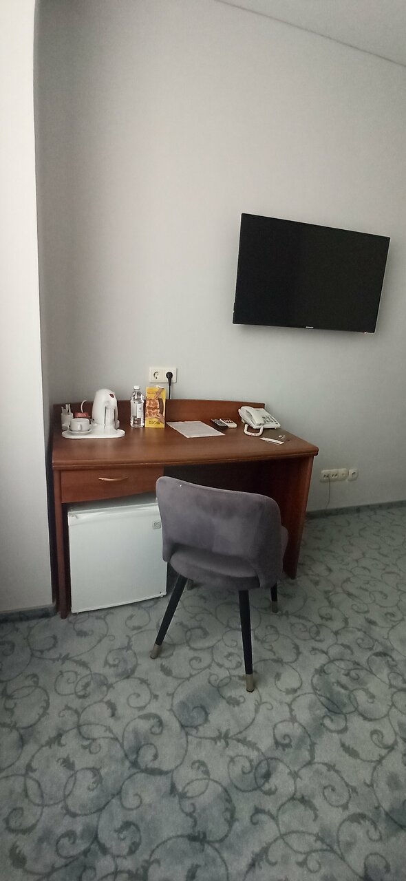 В номере нет чайника, холодно ,обогреватель не помогает , телевизор работает плохо . Завтрак ни о чем . На этажах нет кулеров .Из плюсов приветливый персонал и охраняемая парковка.