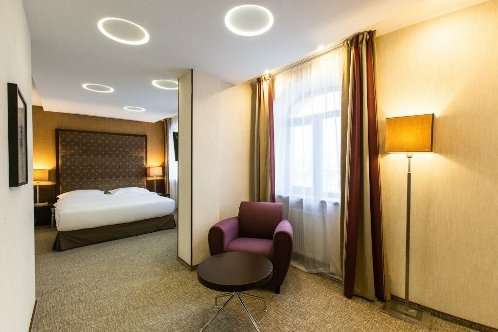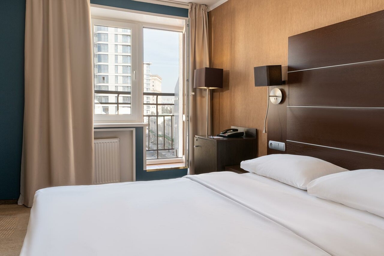 Очень удобное местоположение, чистые просторные номера, особенно прекрасный вид на город открывается с балконов номеров 8-го этажа!!! В номерах чисто и аккуратно, великолепный набор средств гигиены (есть даже мини флакон для дезинфекции рук, и ещё для полости рта) Обслуживание супер, персонал очень доброжелательный и предусмотрительный. Великолепная шумоизоляция в номерах! Единственный и огромный минус для клиентов с авто это ОЧЕНЬ скромная парковка во внутреннем дворике на 3 машиномест 🙁