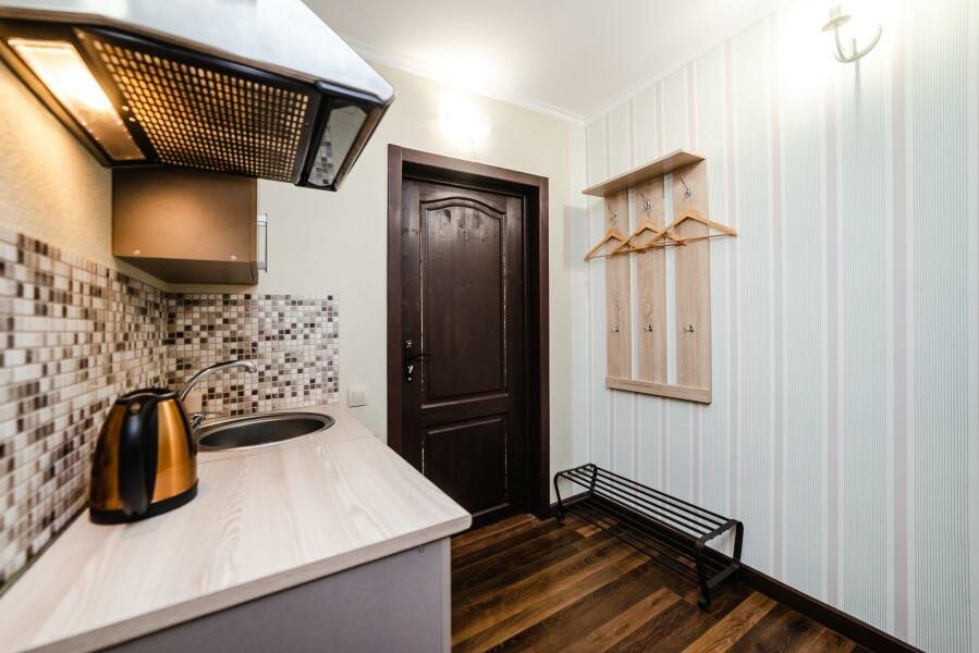 Хорошие апартаменты. В номере есть душ/туалет, чайник, посуда. Все чисто и комфортно. Заселение в любое время и без ожидания. Удобно.
